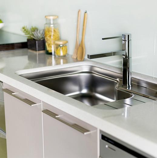 以人工的方式,將亞克力及部分輔佐材料加上有機黏合劑混合加工而成,硬度較天然 石檯面低,較易產生刮痕,但價格比天然石檯面親民許多。