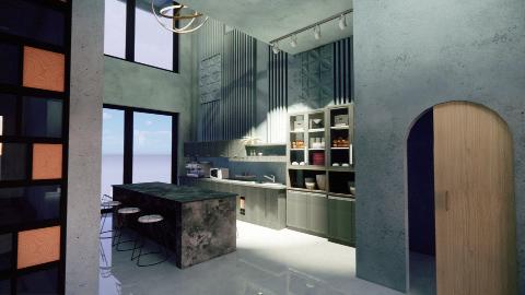 該空間為工業風設計,以建材最原始的色彩 及表面來做整個室內空間的配色。