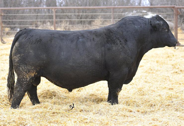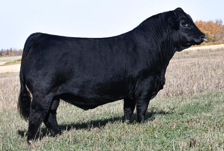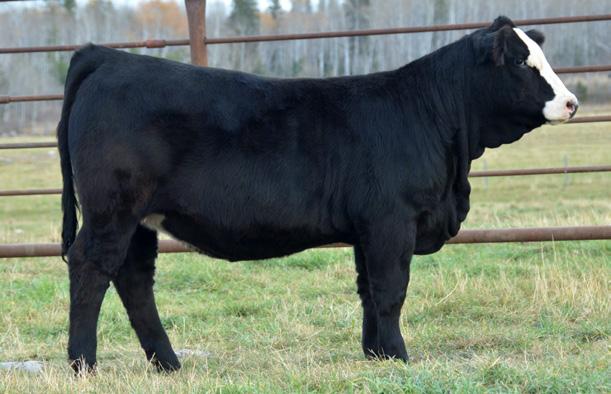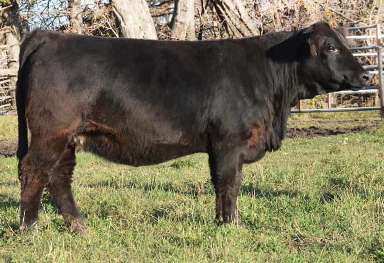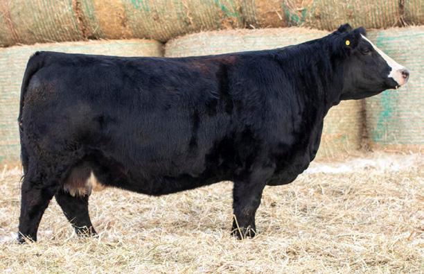 133L is a beautiful Caliber daughter from one of our top young cows and top cow families. The “Blackie” cow family has been around for the last 20 years, anchored by KLC Miss Bring 321N, who joined my dad’s herd in 2005 as the very first black Simmental cow. Since 321N was the only black cow on the place, we affectionately called her “Blackie”. Back when this cow family started, my naming choices were inconsistent, so the cow family actually includes the Whisper, Wisdom and Xana cow lines. 321N lived a long life in our herd, being flushed a few times before being culled at 16 years of age. Her best daughter, Whisper 76T, was flushed as well, as was a daughter of 76T, Wisdom 4W. That means three generations backing 133L have been flushed, with her beautiful dam also on my radar as one we might flush in the future. The longevity and productivity of these “Blackie” females is second to none. The entire cow family have always had excellent feet, udders, milking ability, fertility and docility. 133L’s dam, 1J, raised an awesome Boone Pickens bull in year one, 133L in year two, and this year, another stunning heifer (see picture on page 7). 133L herself is so feminine with a great udder dropping and she is a sweetie. Her photo and video do not do her justice. She is so quiet, it was impossible to make her look alert. She is friendly and likes attention. The only reason she sells is because of her breeding date, which is no fault of her own. She was bred by the MRL bull, but he had been giving us trouble so we also covered her with an A.I. to Kaboom to be safe. The calf will need a DNA test to verify parentage. We are more than willing to cover the cost of the test if you wish.