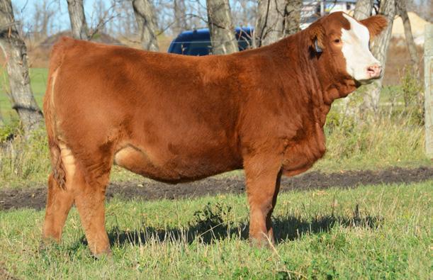Sale feature! Our red bred heifer offering is small this year, but we loaded some really good red options into the open heifer section to make up for it. 101M was supposed to be an untouchable, but with our red numbers being low, I knew I had to part with something special for a feature bred. She is one of the youngest “M” heifers with being born in our February group of embryo calves, but she has always kept pace with her early January counterparts. She was the top gainer in her contemporary group and weaned with a ratio of 110. If you’re looking for a heifer to add some frame, she will do it. She is big and she gets her size from her dam. Sage 11H is one of our donors, having been flushed to Walk The Line and Tycoon. Her Tycoon heifers headlined this sale last year, and her WTL sons headlined our bull sale this spring. She is a big, beautiful cow with a great udder that milks very well. 11H can really raise a calf! There is also a lot of predictability in this WTL x Sage 11H cross as it has been repeatedly impressive. This spring, our high selling Lot 1 bull was a full brother to 101M. Memphis 38M is one of the most impressive bulls we have raised and we are using him in our program through A.I. Then this year, 11H gave us twin full brothers to 38M and 101M, both of which are at the very top of our bull pen once again. I showed one of those bulls at the MSA Summer Show in June and he won Champion Bull Calf as well as overall Grand Champion Simmental Bull. 101M is a big time power female that deserves serious consideration. She has what it takes to be a bull producer, just like her dam.
