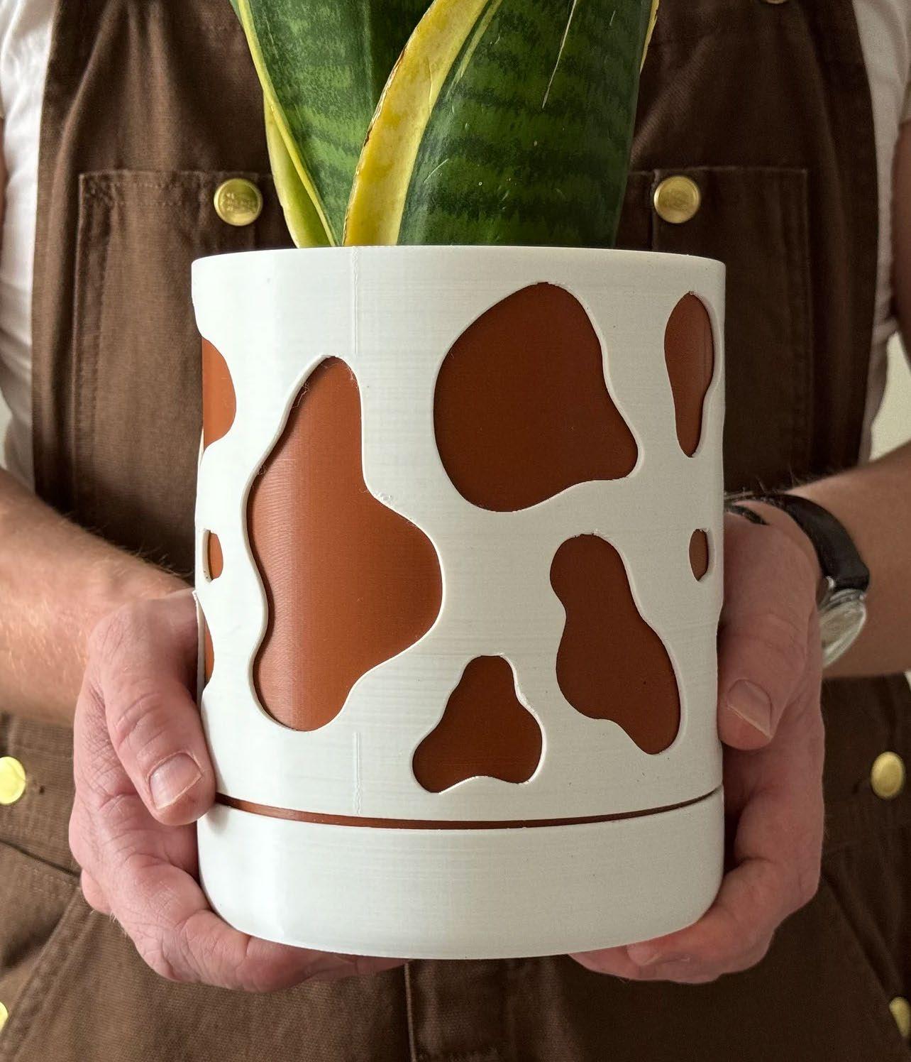 In a sustainable moo-d? Check out 3DeZarnStore – a oneperson Etsy shop crafting custom, 3D-printed flower pots designed to bring joy and greenery into your home. Each pot is made from recycled materials – making it a great sustainable gift!**