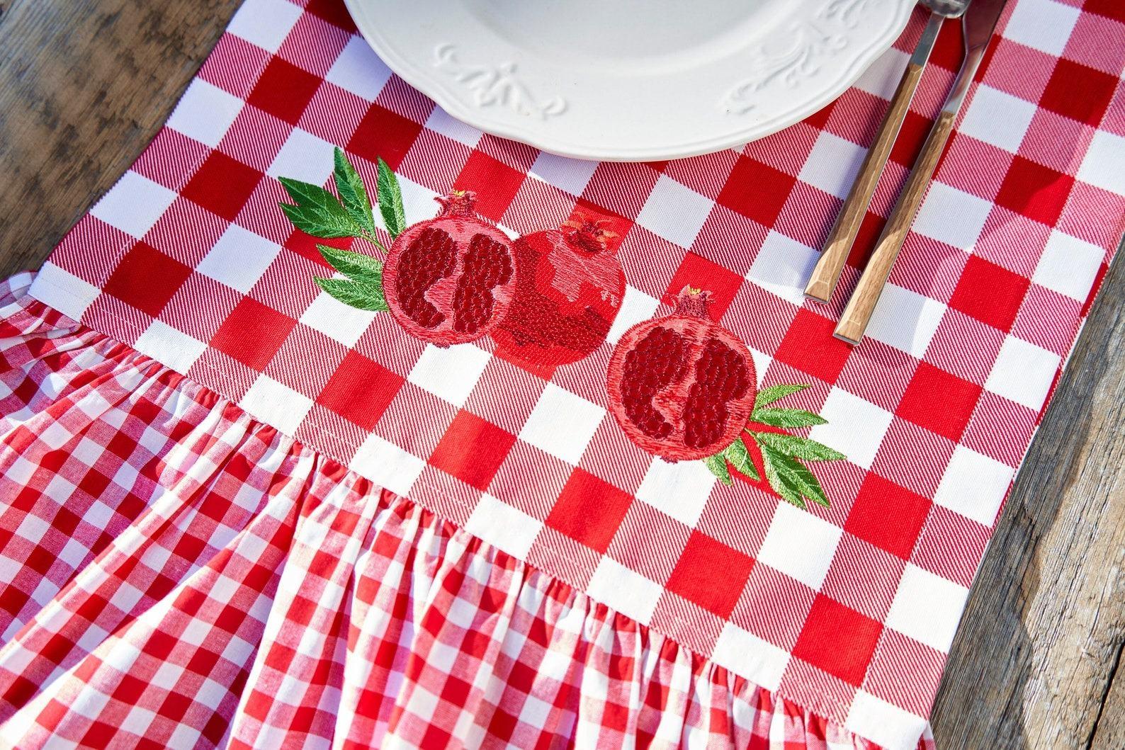 Brooklyn-based maker Deanne of PNRDecorShop is all about turning everyday dining into main character moments. Her scalloped placemat sets channel the Supper Club trend perfectly with playful, punchy, and totally personal details. Embroidered in bold pink and red, they bring girl dinner energy with a hostess flex twist, instantly making your spread feel curated and your guests feel special.