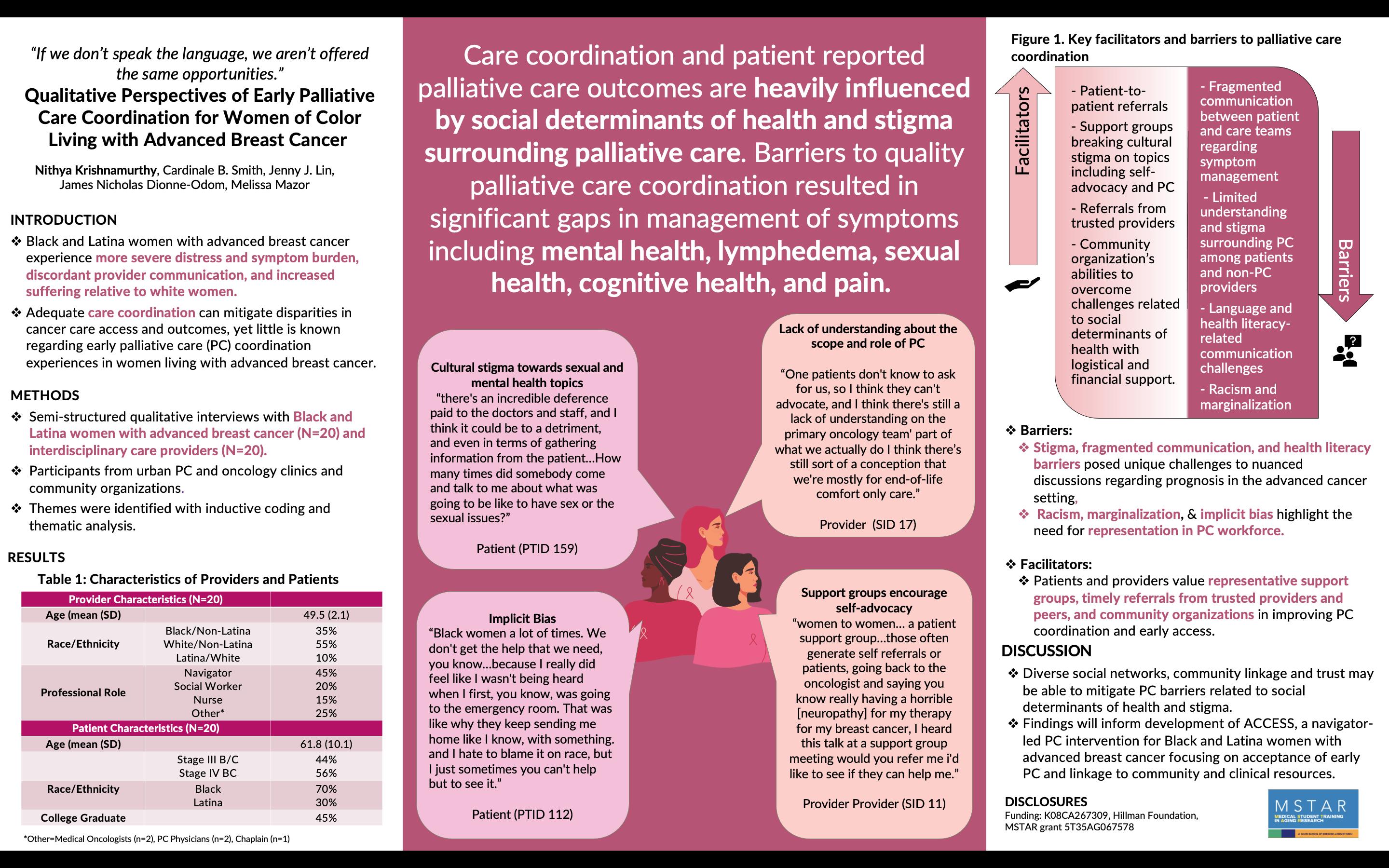 Project: Qualitative Perspectives of Early Palliative Care Coordination for Women of Color Living with Advanced Breast Cancer