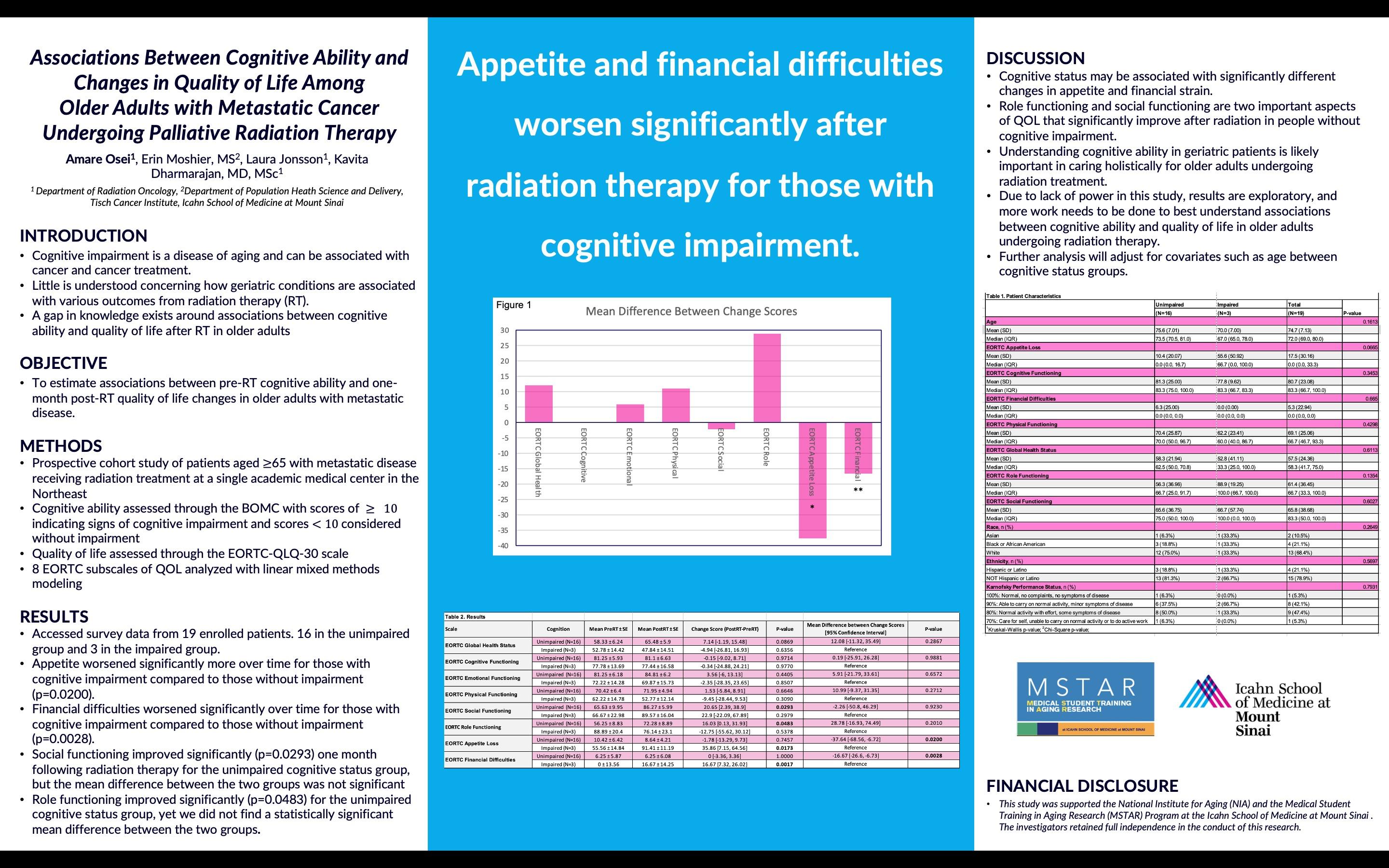 Project: Associations Between Cognitive Ability and Changes in Quality of Life Among Older Adults with Metastatic Cancer Undergoing Palliative Radiation Therapy