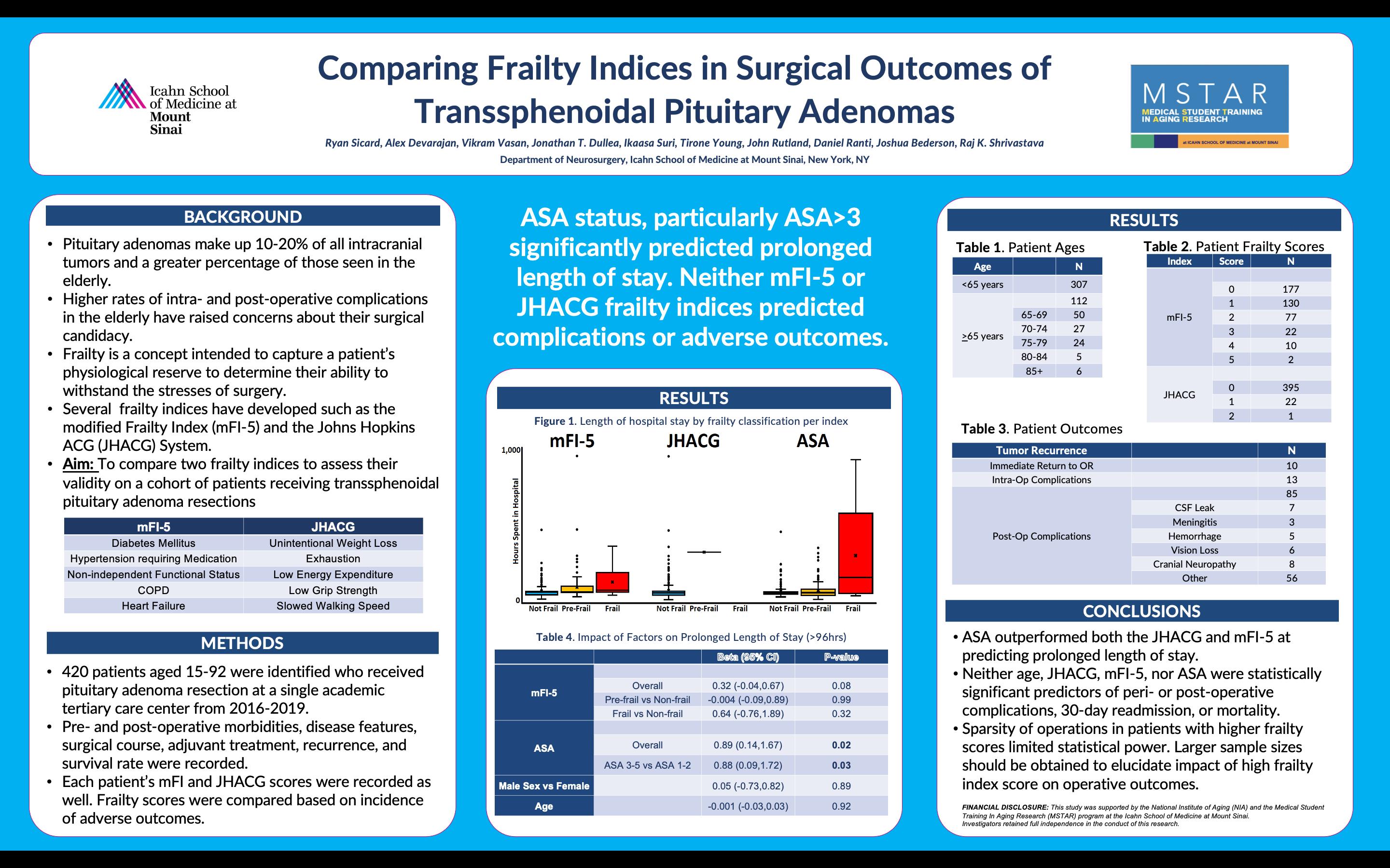 Project: Comparing Frailty Indices in Surgical Outcomes of Transsphenoidal Pituitary Adenomas