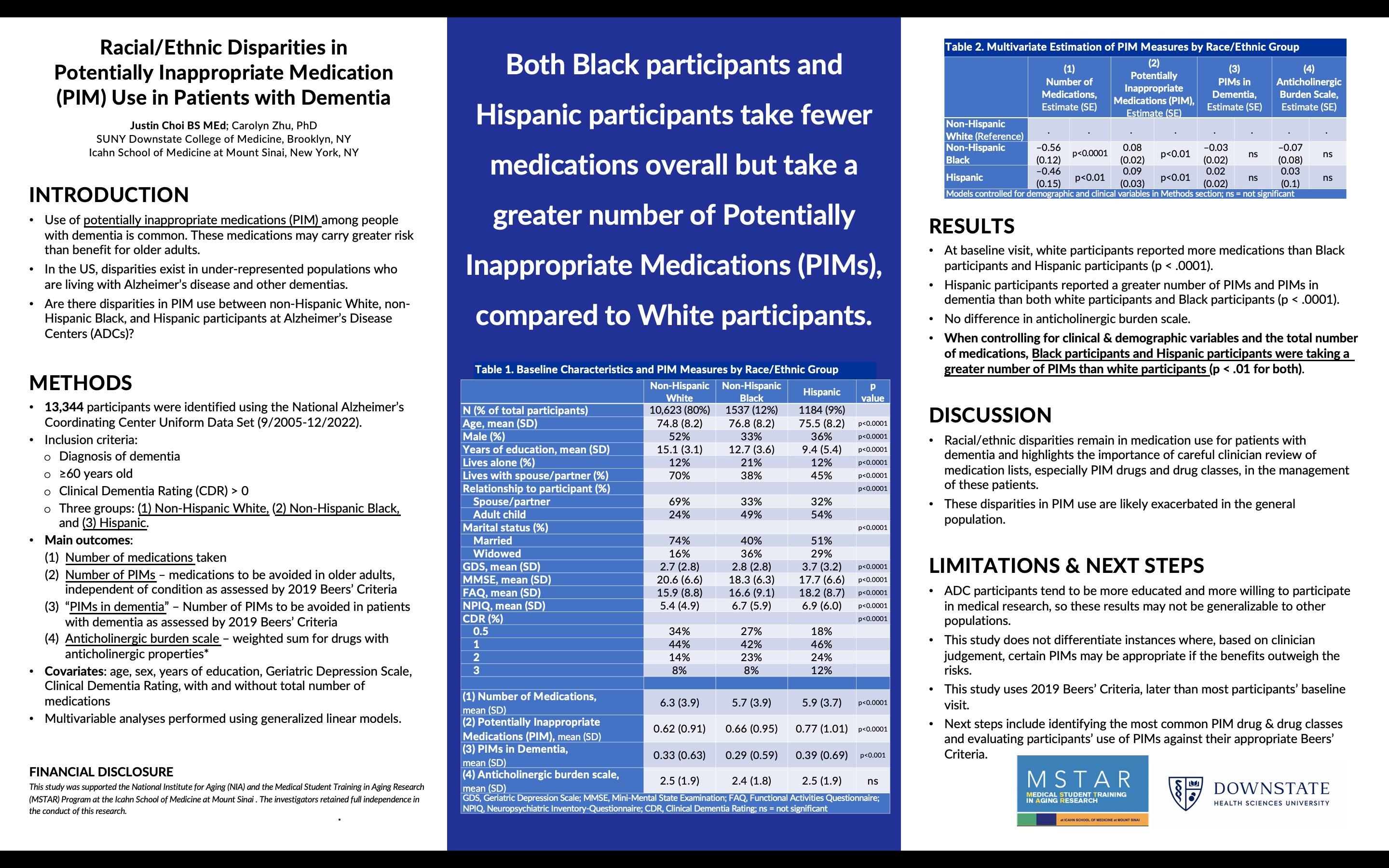 Justin Choi BS MEd; Carolyn Zhu, PhD SUNY Downstate College of Medicine, Brooklyn, NY and Icahn School of Medicine at Mount Sinai, New York, NY