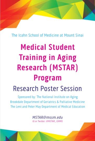 The Medical Student Training in Aging Research (MSTAR) Program at The Icahn School of Medicine at Mount Sinai is a T-32 program, generously funded by The National Institute on Aging (NIA). It proudly stands as one of the eight National Training Centers, an impressive group that includes Harvard Medical School, Johns Hopkins University School of Medicine, NYU, UCLA, UC San Diego, University of North Carolina, and Augusta University (Puerto Rico).