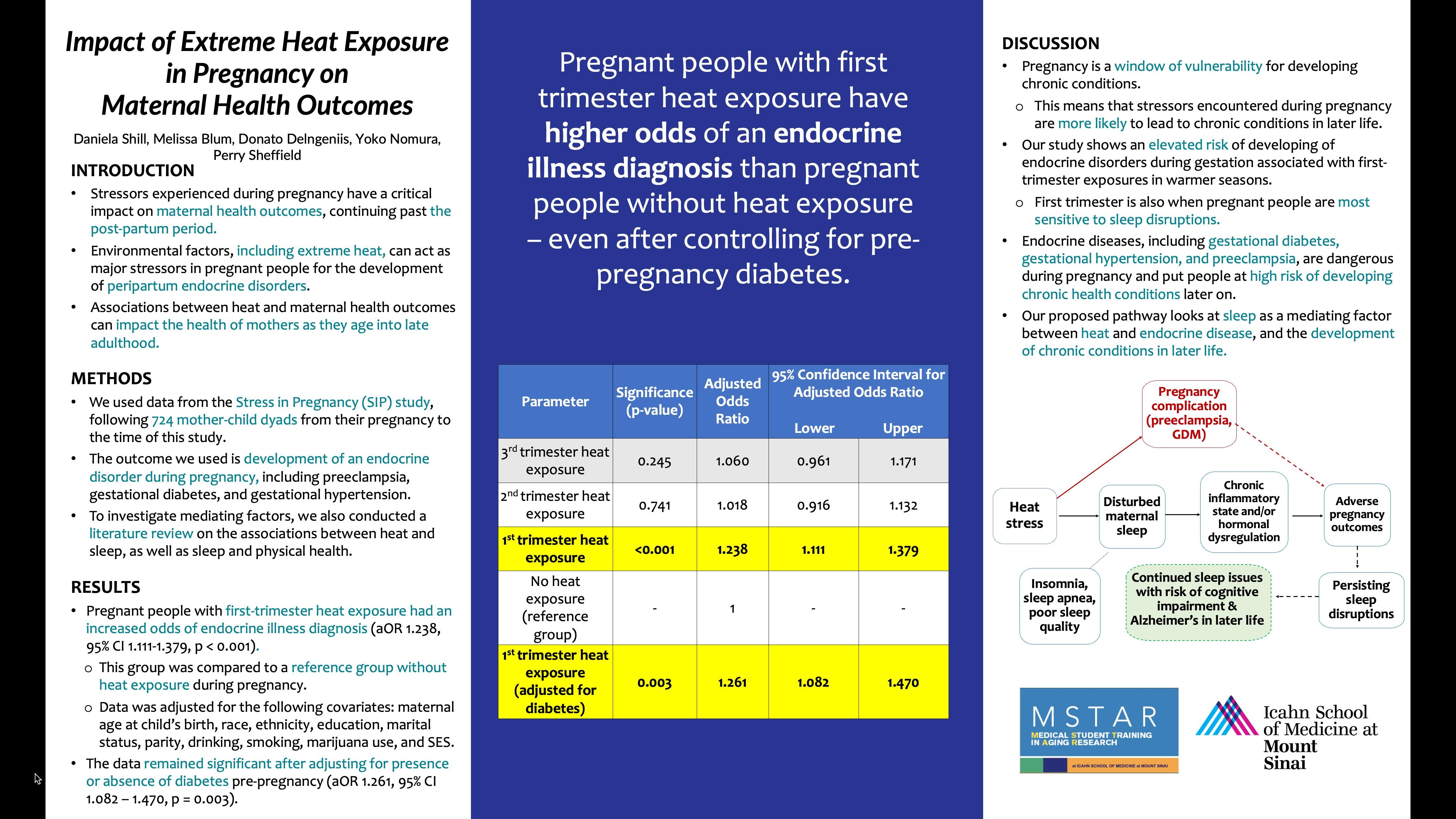 “Pregnant people with first trimester heat exposure have higher odds of developing chronic endocrine conditions than pregnant people without heat exposure – even after controlling for pre-pregnancy diabetes.”