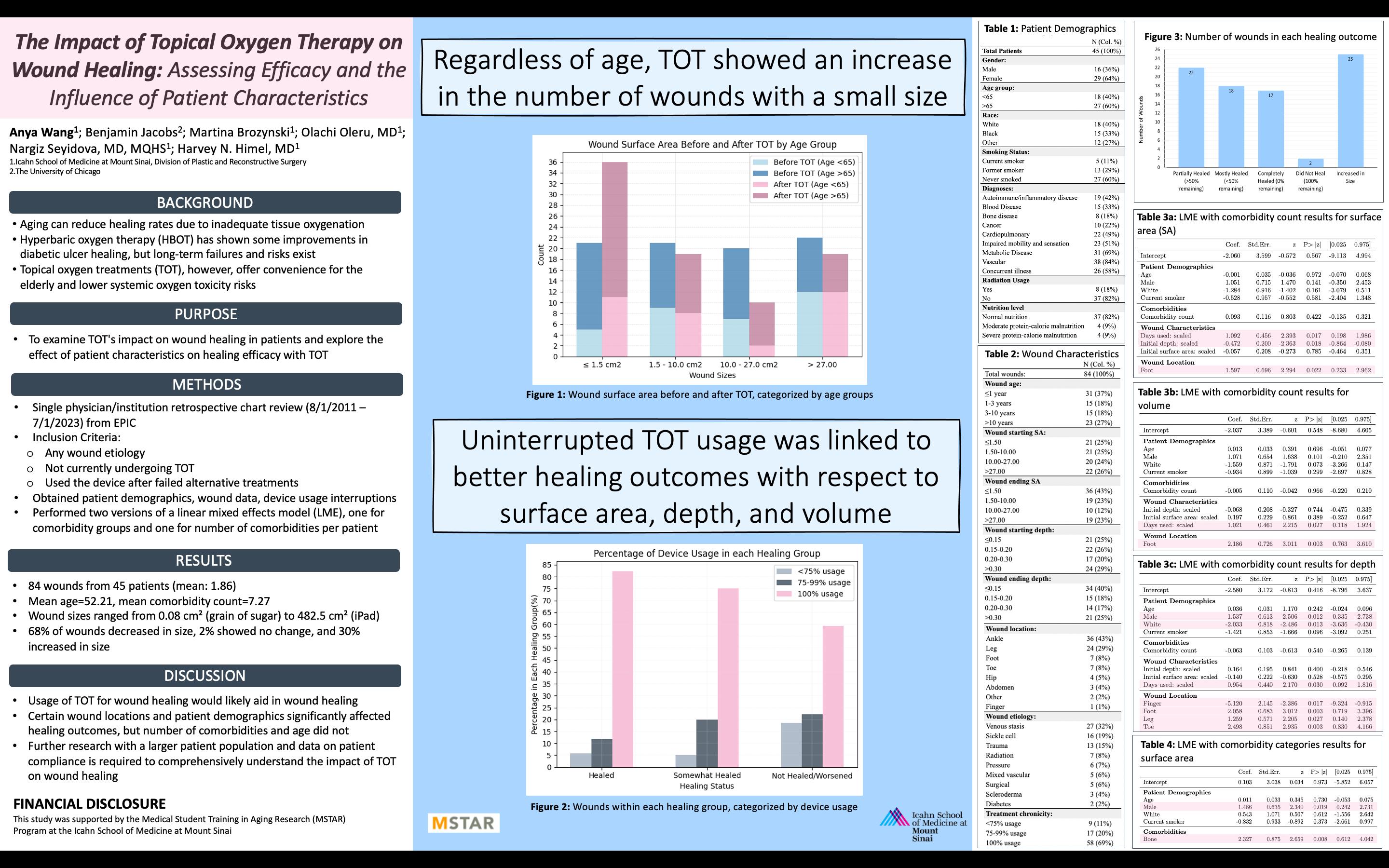 “Regardless of age, topical oxygen therapy (TOT) showed an increase in the number of wounds with a small size. Uninterrupted TOT usage was linked to better healing outcomes with respect to surface area, depth, and volume.”