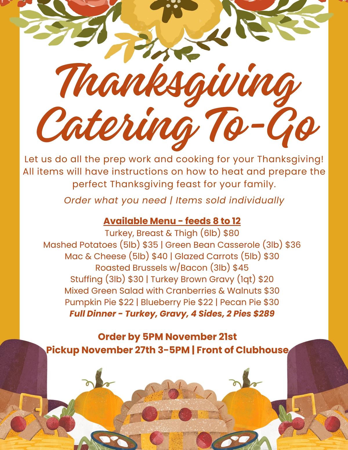The Closing Brunch will be held on Thursday, November 14th, 2024 at 9:00AM. Brunch will include a buffet style food station with coffee, tea and juice. The cost is $15.00++ and will be billed to your member account.
