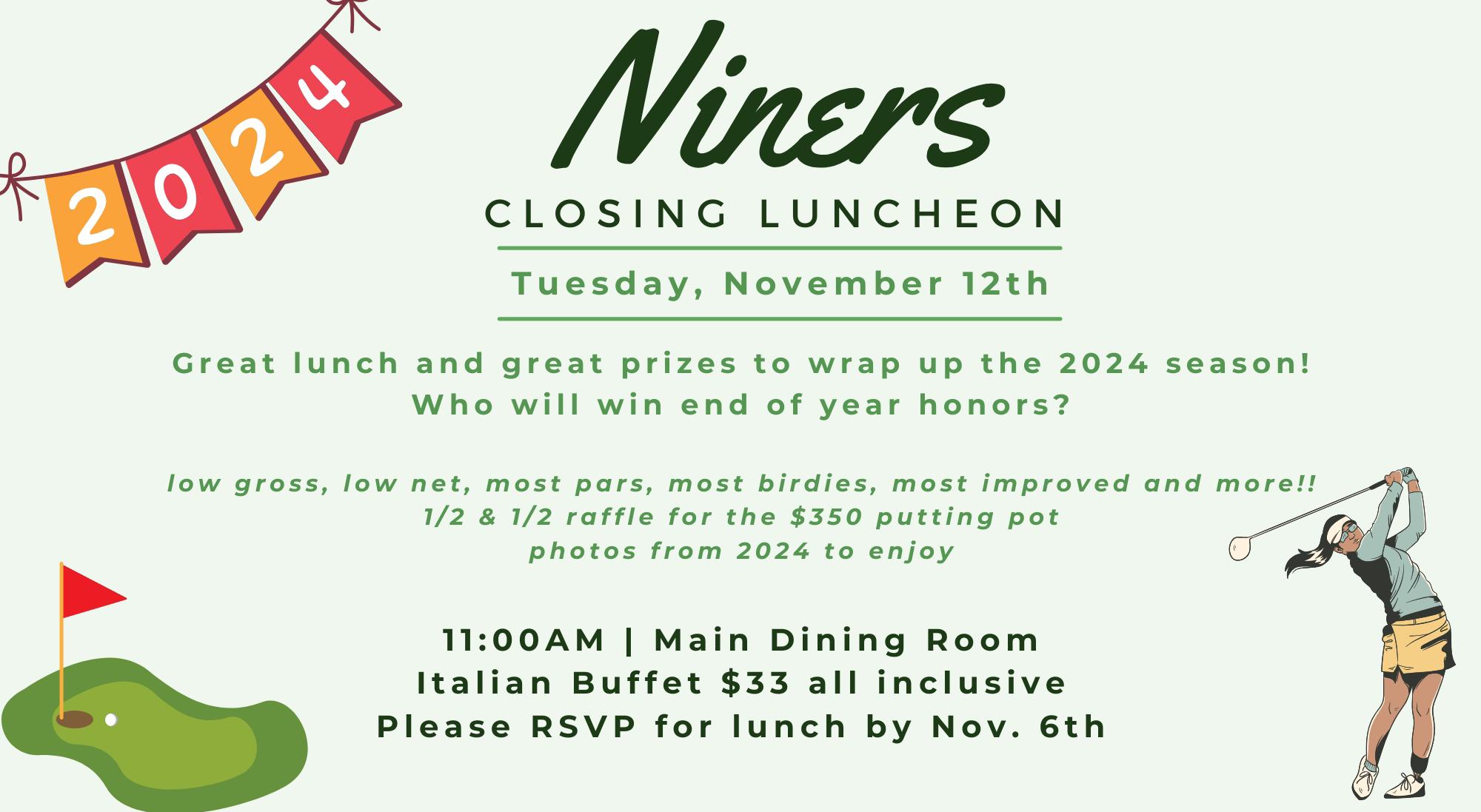Rounding out the year is the Annual Holiday Party on Friday, December 6th. The Niners will be dressed to the “nines”, so bring a friend, bring a mate, or just bring yourself. We will dine, dance and - of course - have a blast - as only the Niners can!