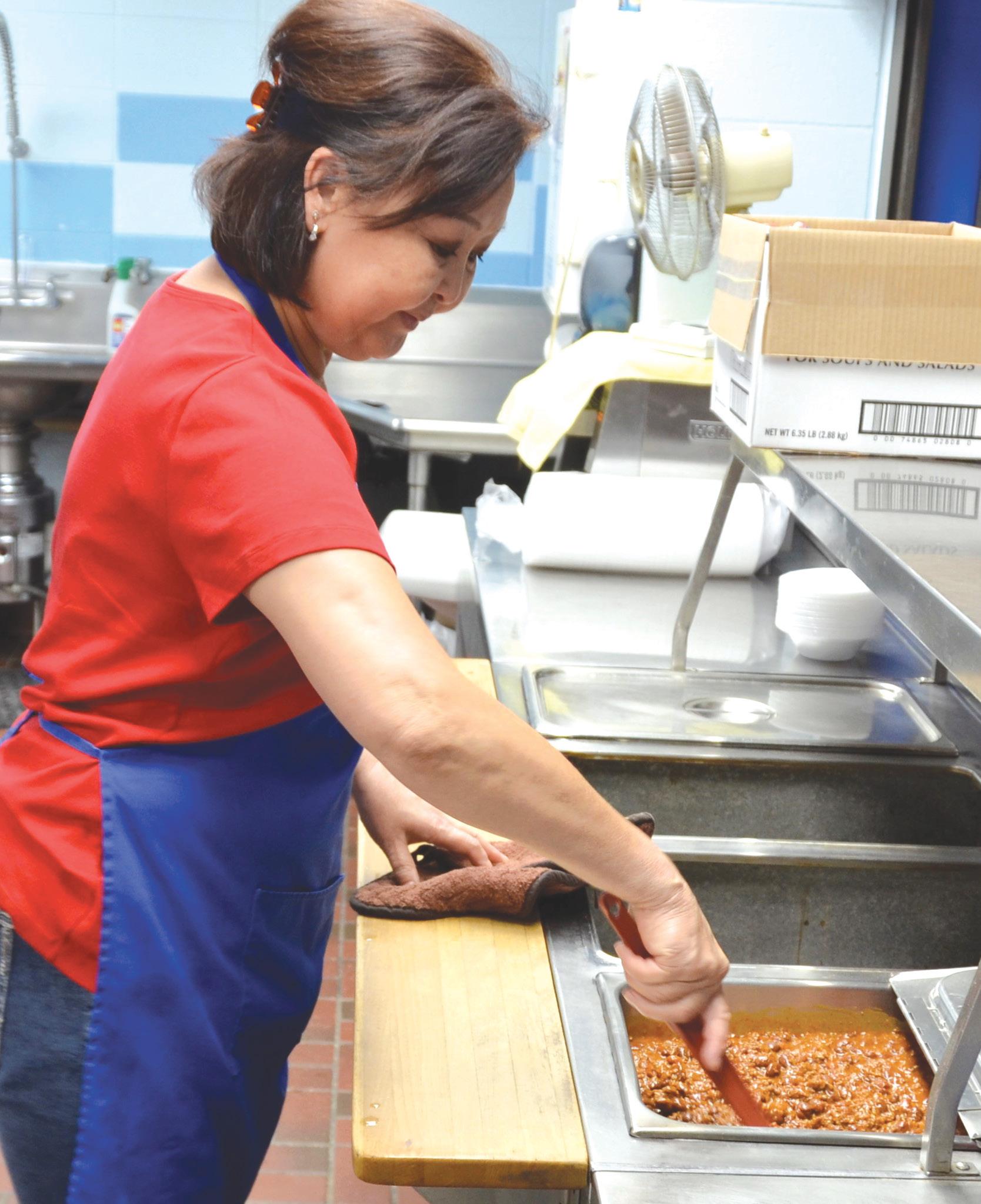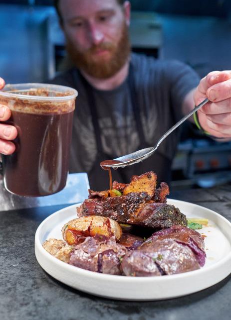 DAVID MANGER, LINE COOK FOR THE FIELDHOUSE PUTS FINISHING TOUCHES ON A PLATE
