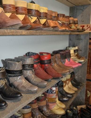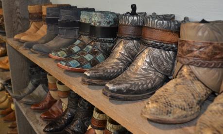 With Tucker’s encouragement and insight, she began buying up used, quality boots. The piles stacked up. Not only did she turn the tops of the boots down, she also began exchanging the tops with other boots. Her hobby soon moved from the house to the garage, where she would work until she had a carload and could travel to stores and trade shows across the region.