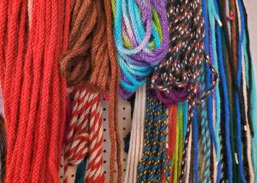 Using only strong, natural fibers of mohair, alpaca and horsehair, Tia’s designs are limited only by her imagination. Every corner of her shop is ablaze in colors from the skeins of vibrant yarn hanging on racks. Tia has a way of turning a functional piece of saddle tack into a beautiful work of art.