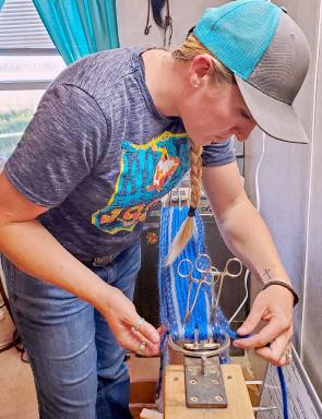 Thinking it might just be a fluke, Tia tried the other cinch and the same thing happened. After a close examination of both cinches, Tia discovered something that would launch her career. “The ends of the yarns were glued to keep them from unraveling. The glue was applied on one side of the cinch, but it soaked through the fibers enough to make the inside of the cinch rub on my horse’s belly and sore him.”
