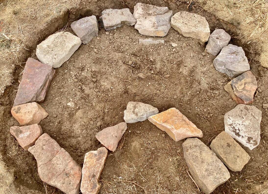 After gathering rocks, I measured and leveled an area approximately six feet in diameter. While I chose to use rocks, there are countless options that would work – landscape bricks are a popular choice as they are readily available and easy to stack. Some stack wood or use galvanized metal for the perimeter. There’s even been some creative enough to use wine bottles for an artistic design.