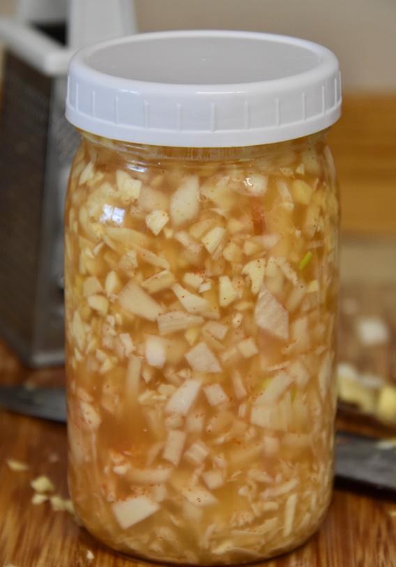For building your immune system, take by the spoonful. In a wide mouth jar, place approximately one cup of peeled and chopped garlic cloves and a cup of raw honey. Loosely screw on the lid and keep in a dark, cool place. Every couple of days, tighten the lid, gently shake to mix. It will be ready for consumption in a few days and will ferment fully in a month. Keep in the refrigerator to last longer.