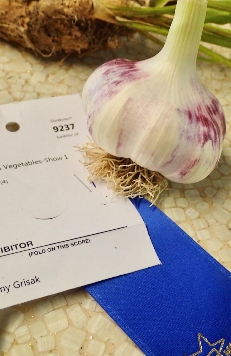 cloves. Many of the varieties I like, such as Rocambole, Purple Stripe, and German White, are part of this group. The hardneck garlic produces garlic scapes, (the flower stalks of the garlic plant) which are an extra bonus in the garlic world. Scapes can be stored for up to six months, although my supply rarely lasts that long.