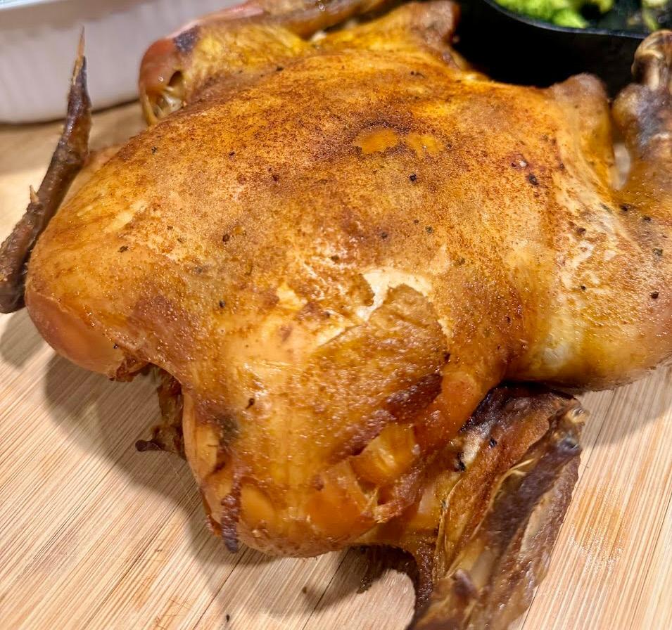 Separate the outer skin from the breast meat, get under as much skin as possible and sprinkle the smokey rub between the skin and meat. Lay the skin back along the meat. Coat the outer layer of the bird with rub until it’s completely coated. Heat a smoker to 275 degrees, add the bird, and let it smoke for 3 ½ - 4 ½ hours, reaching an internal temperature of 165 degrees.