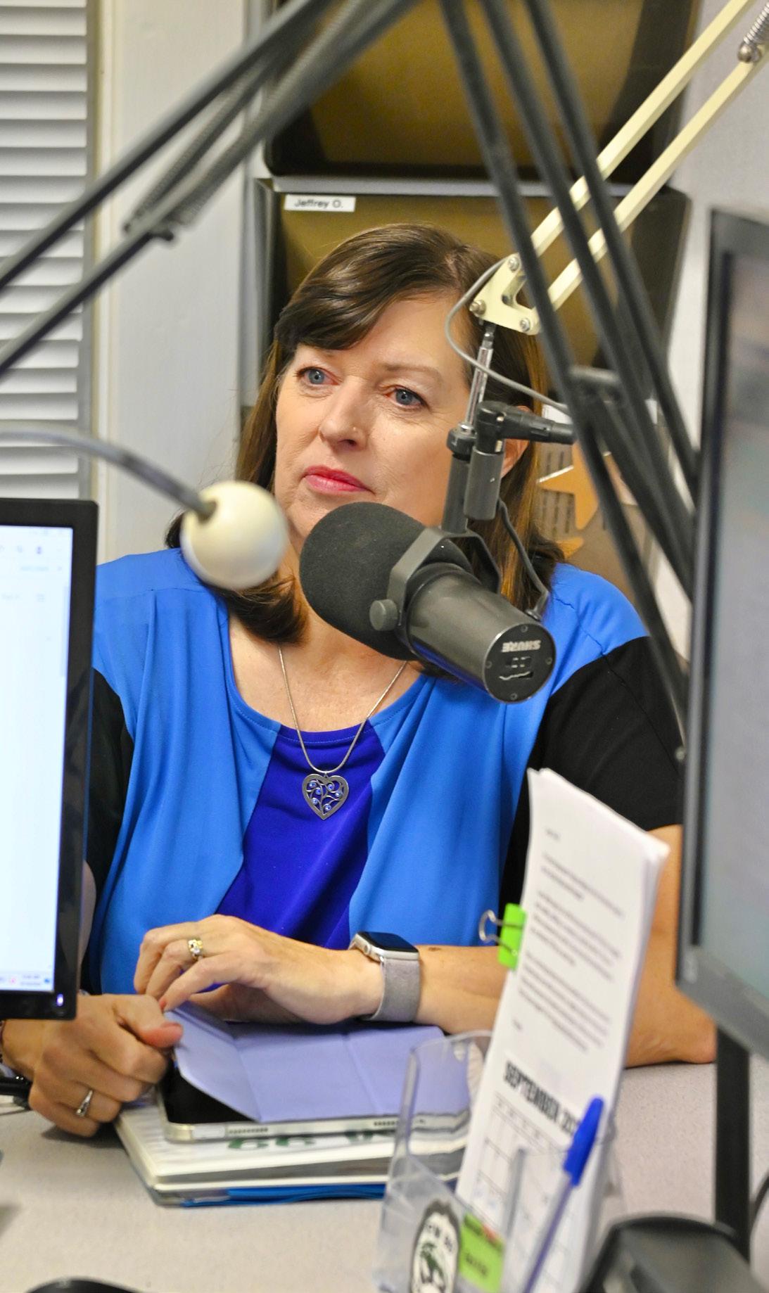 Arriving every day at the station in the predawn hours, Les spends three or four hours inserting songs, advertisements and news spots into the computerized program and then gets ready for the live program he and TJ do each morning. From 7:00 until 9:00 a.m., the couple wake up listeners playing hit songs from the 70’s, 80’s, and 90’s, while exchanging goodhumored teasing, sharing current topics, tidbits about the community and upcoming events. Several days of the week, guests are part of the programming with Les and TJ leading the conversation.