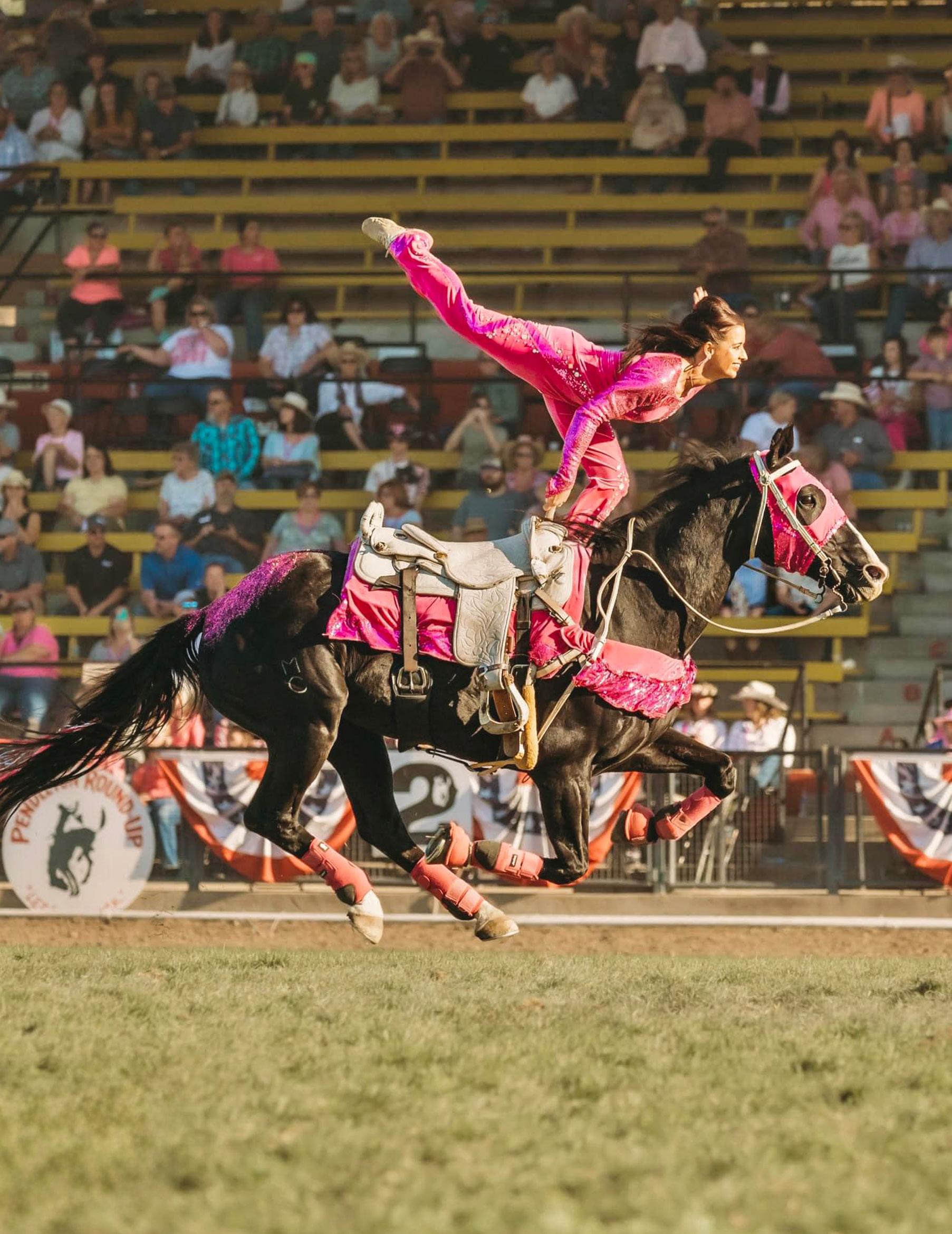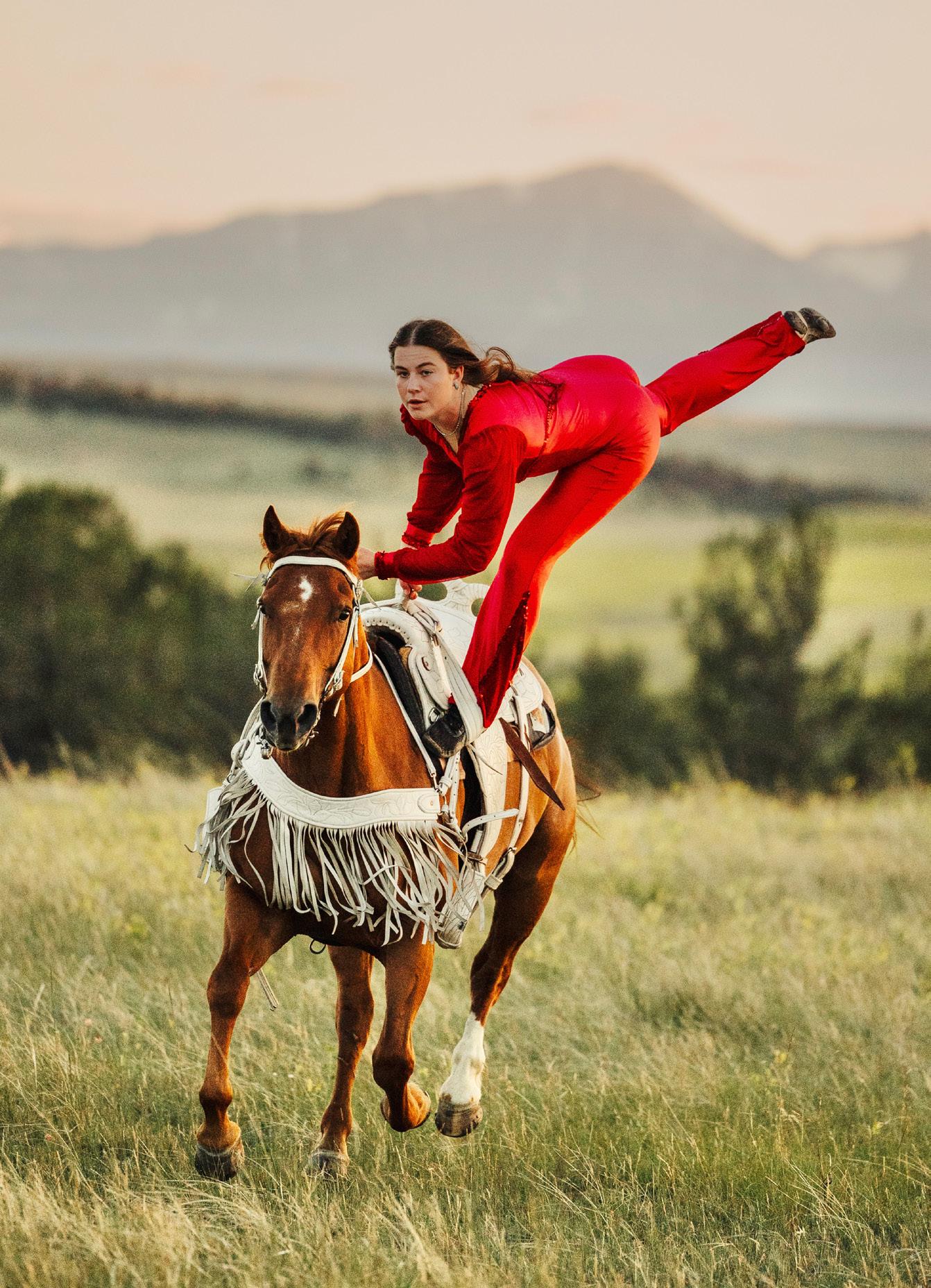 With all its flamboyant pageantry, and horsemanship, trick riding is the stuff of little cowgirls’ dreams. At age five, Madison MacDonald-Thomas was smitten by the spotlight, fast horses, and jaw-dropping stunts.