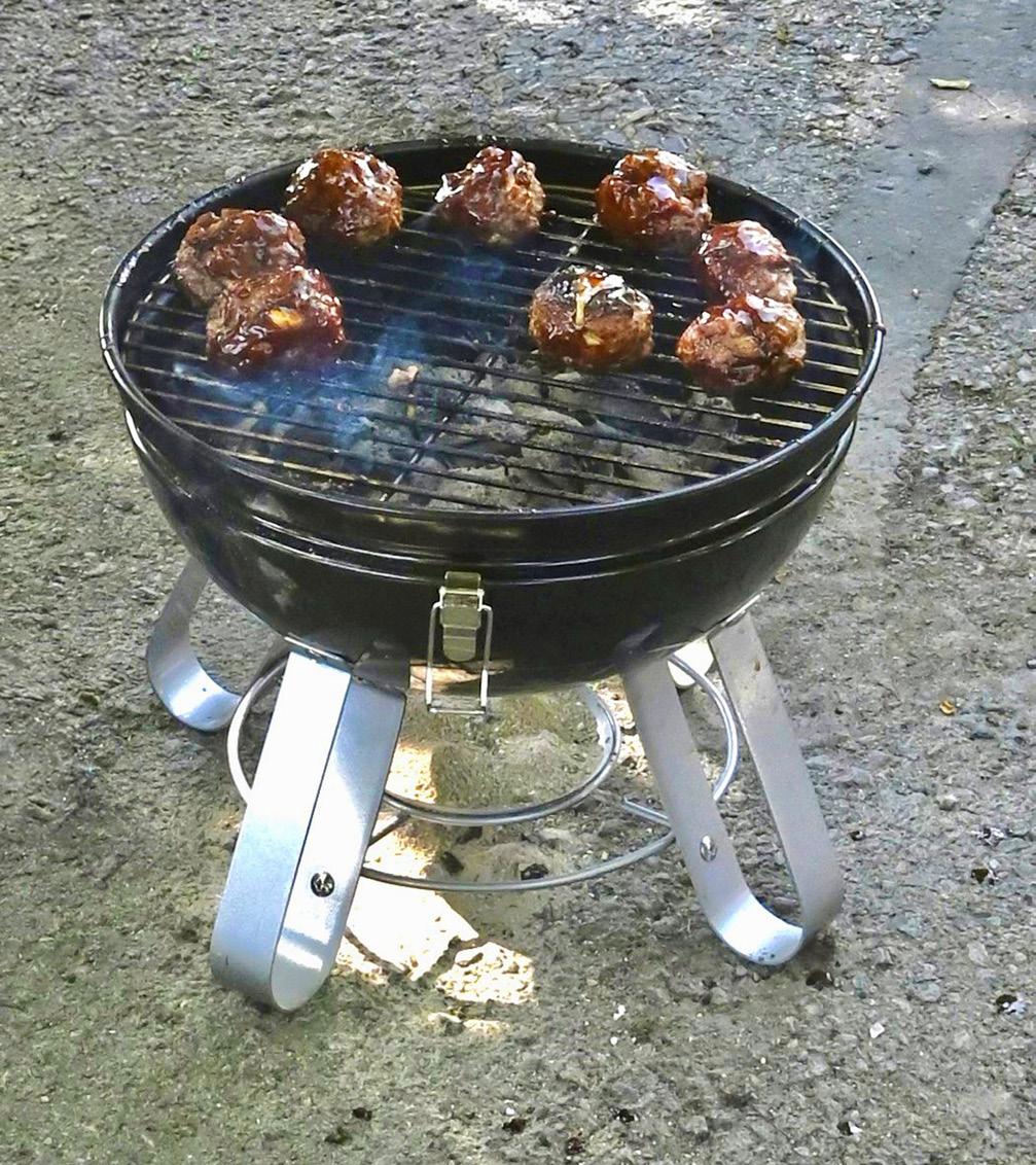Payton was the head chef and as such; the one at the grill. When the meatballs were ready for the heat, she put on leather gloves and cautiously watched - turning them at the fiveminute mark to ensure they turned out perfect, using a thermometer to test for doneness.