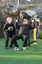 Vaisaaren koulun kyljessä on laaja lähiliikunta-alue, täynnä mahdollisuuksia treenata ulkona. Alueella voi vetää leukoja, sprintata pikamatkan, tasapainoilla ja kiivetä telineissä, punnertaa levytankoa tai heittää voimapalloa.