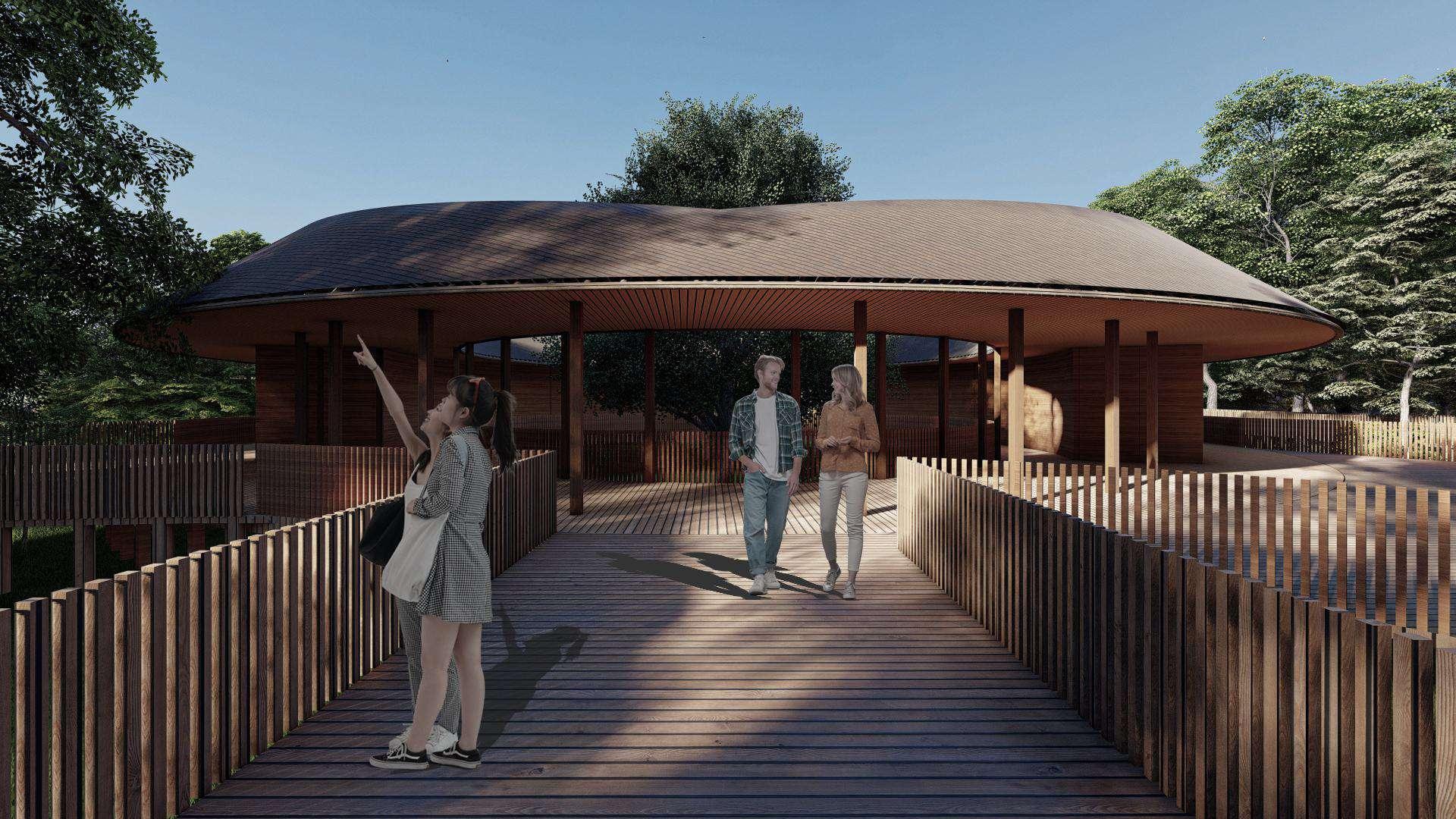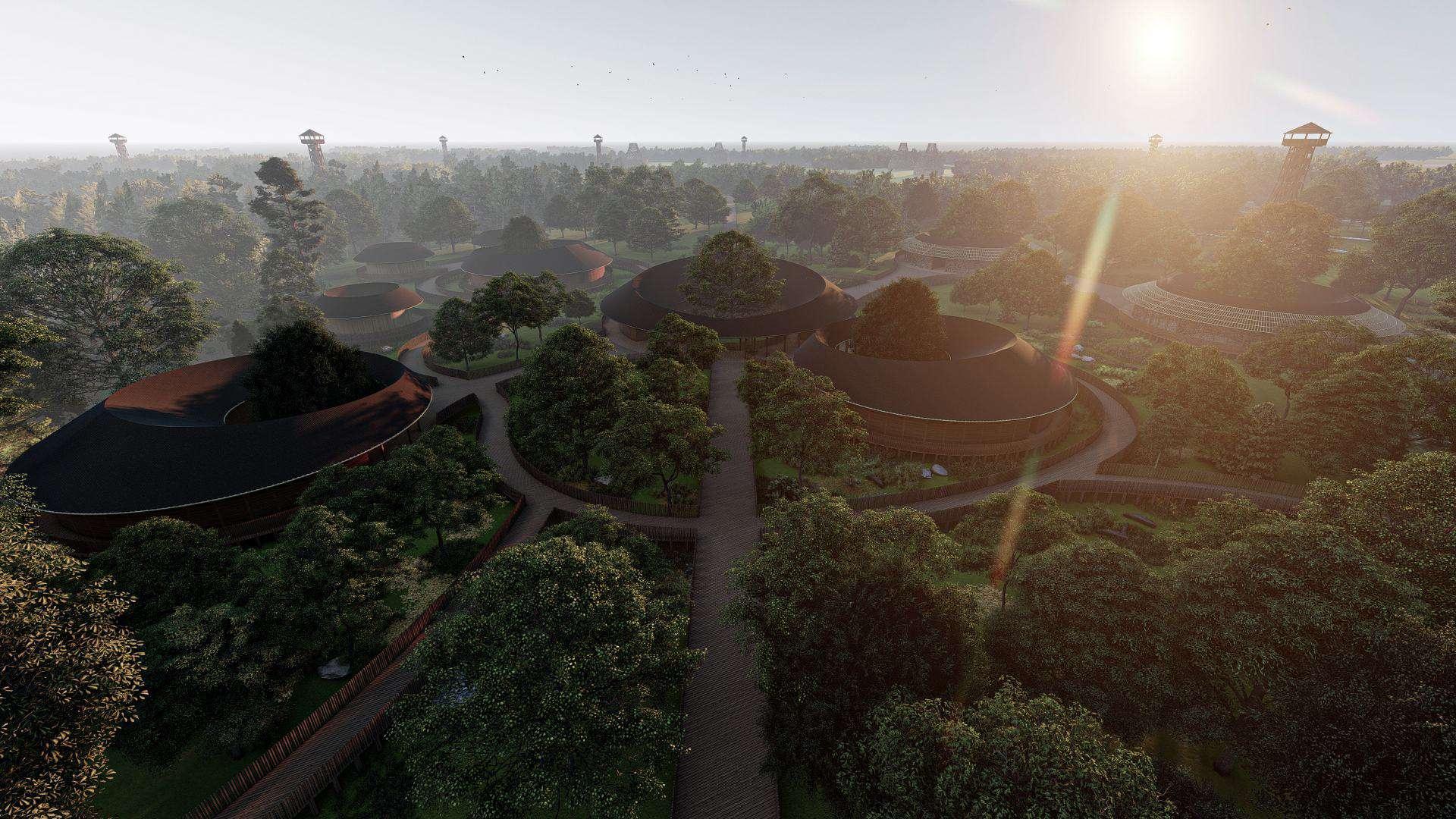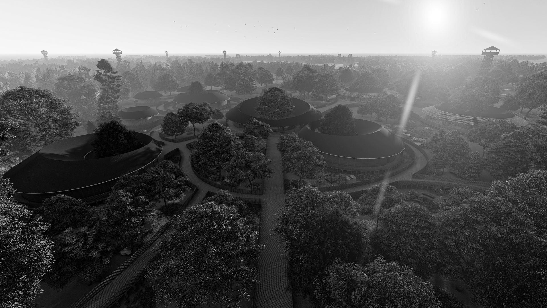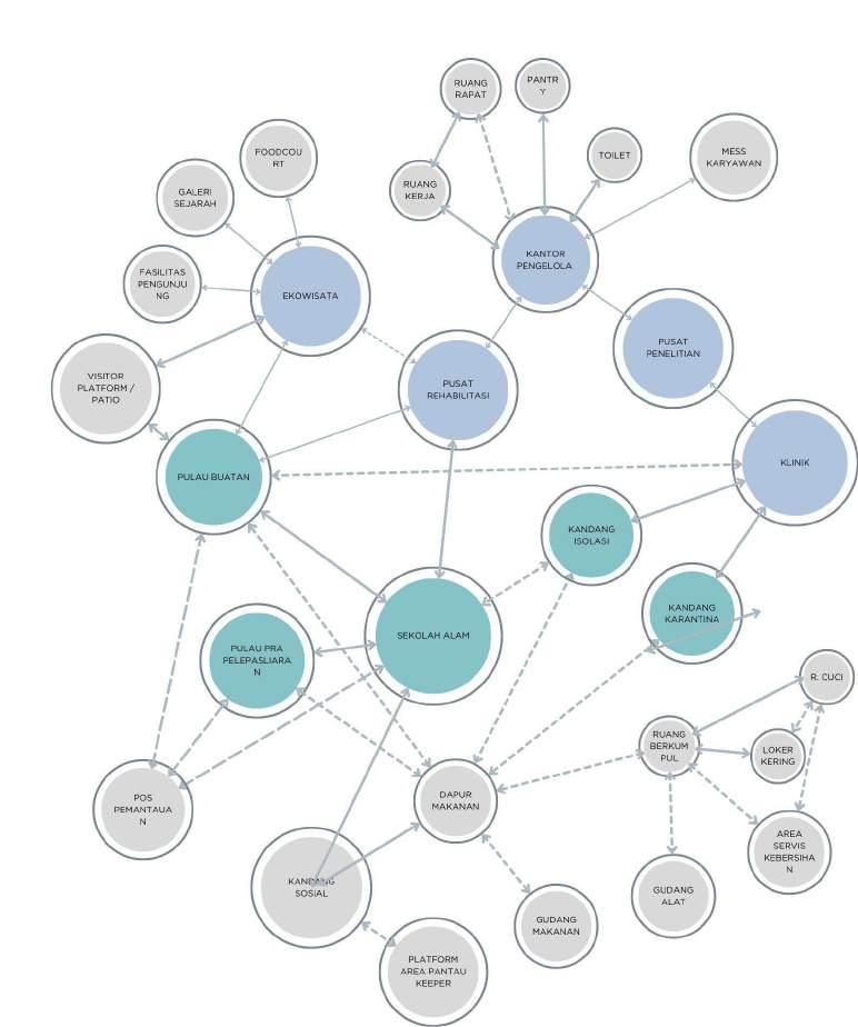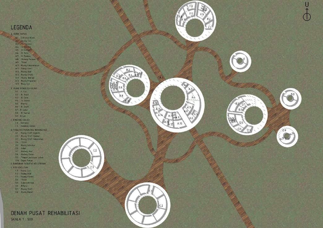 Tampak kawasan rehabilitation area, yang terdiri dari kawasan pengelola, kawasan klinik dan rehabilitasi juga kawasan ekowisata yang berupa skywalk area dan gathering area (foodcourt, souvenir shop dan service area)