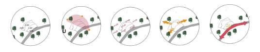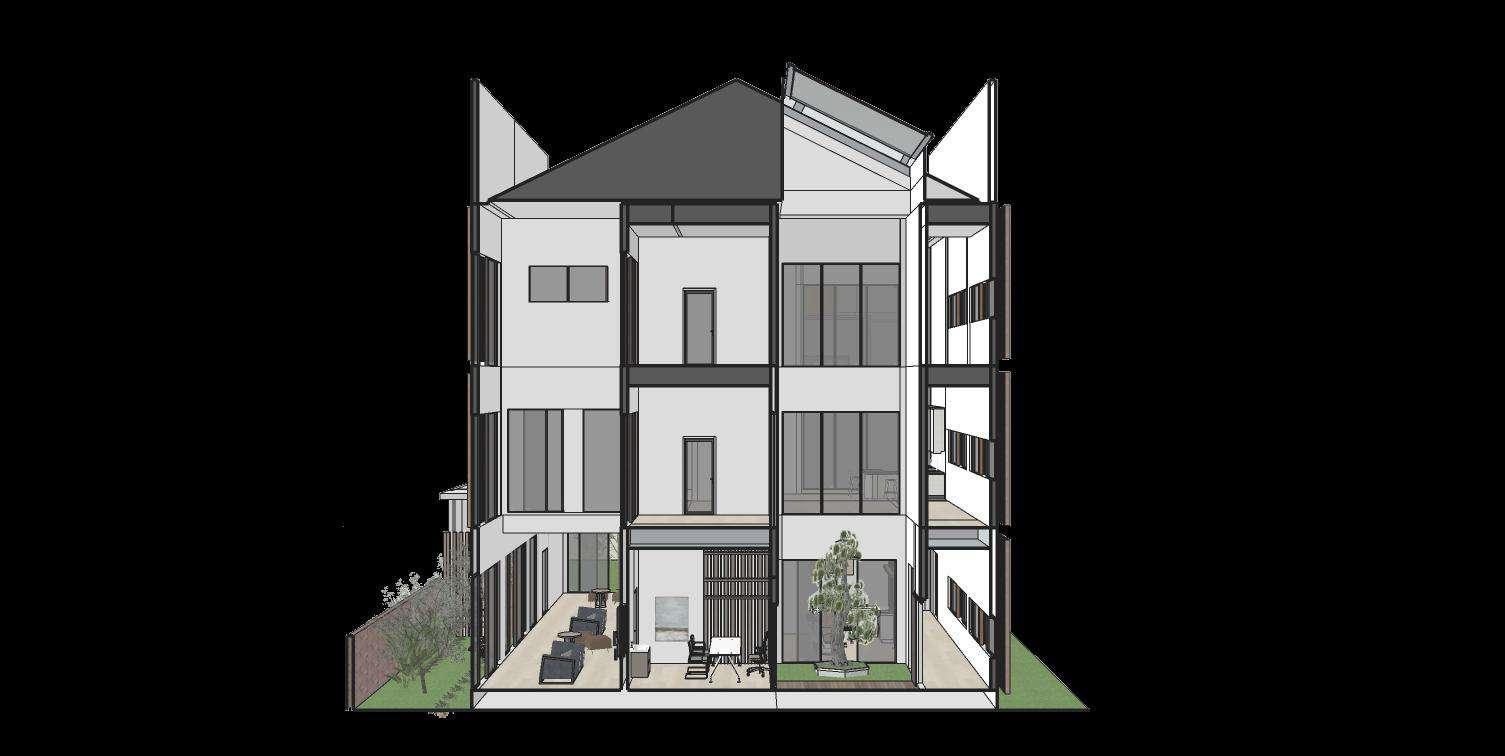 Poin utama sebuah hunian rumah tinggal adalah tempat kita dapat melakukan aktivitas-aktivitas pribadi kita dengan nyaman, maka dari itu dalam hunian ini juga dimaksimalkan pembagian zoning antara ruang-ruang publik, servis, dan private yang cukup tegas dengan pembagian massa dan level bangunan untuk tiap beda zoning. Poin terakhir dalam konsep eco-design ini adalah menggunakan desain dan material bangunan yang tidak menimbulkan kontras dengan bangunan eksisting pada sekitar tapak .
