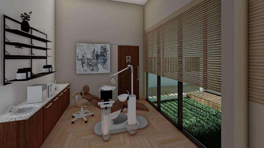 Pada interior ruangan klinik juga diaplikasikan material yang senada dengan material pada ruang tunggu yaitu kombinasi material kayu lapis dan warna abu-abu. Pada ruang ini terdapat connecting door yang langsung menghubungkan dengan area private karyawan sehingga mobilisasi dokter dan karyawan tidak bersamaan dengan pasien.
