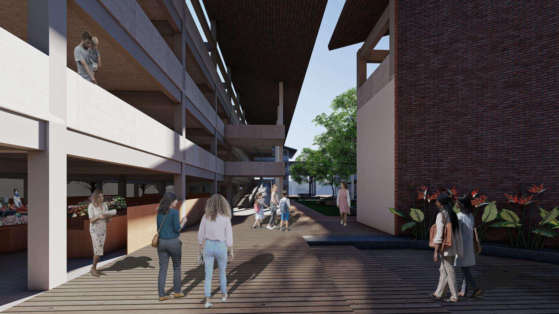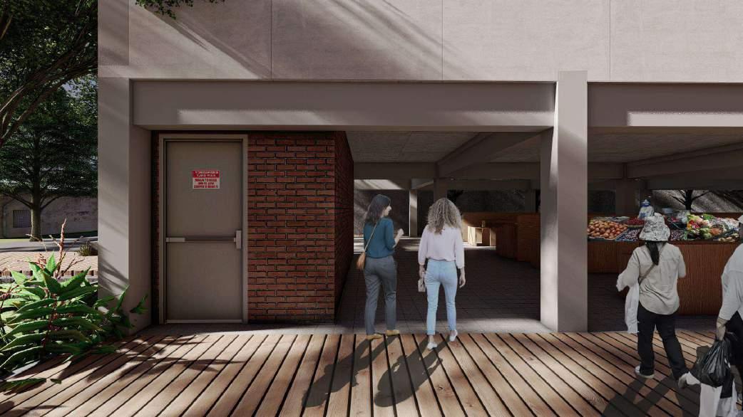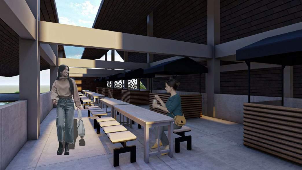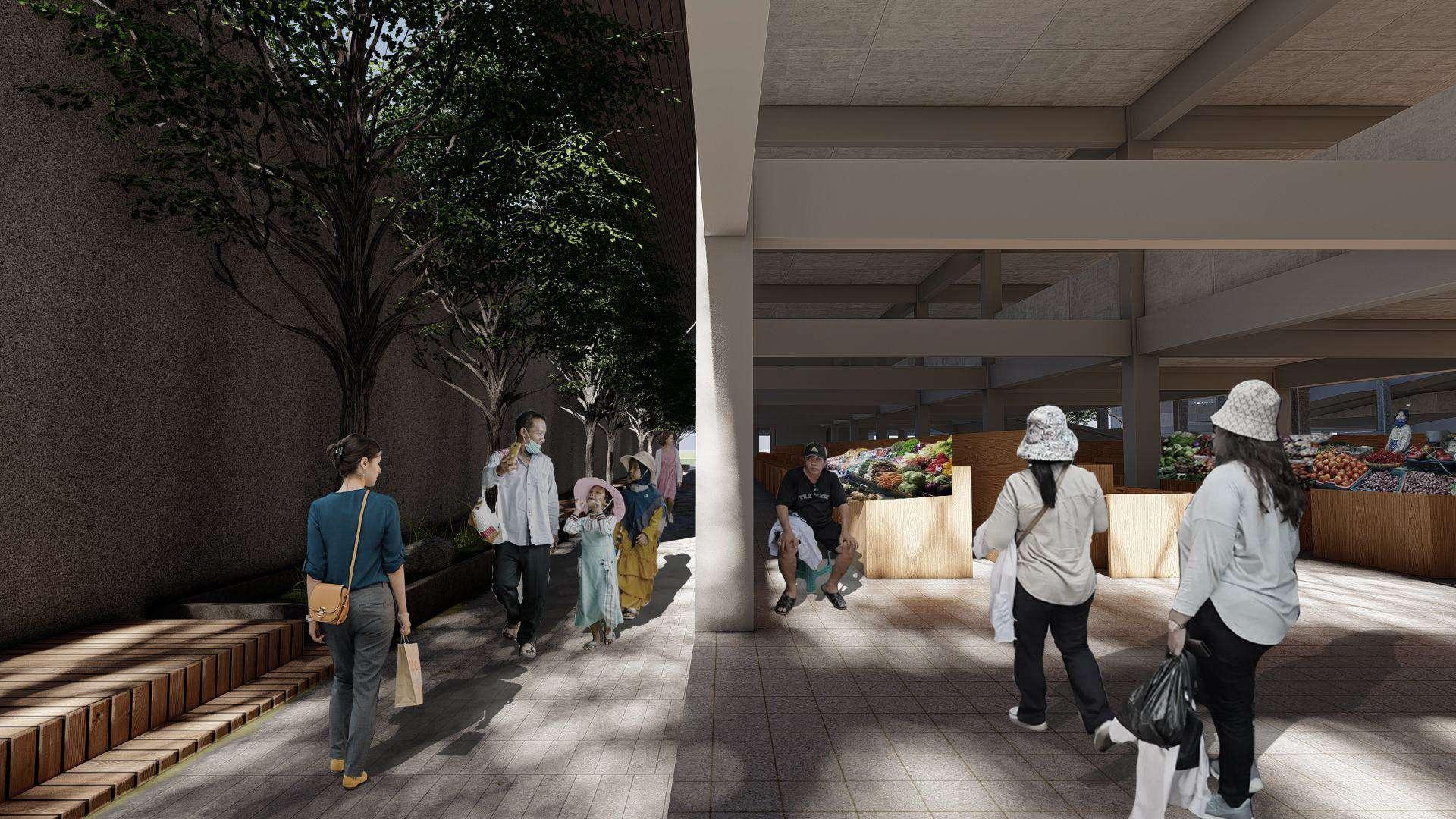 Los terbuka pada lantai 1 dan plaza ditengah bisa difungsikan saat malam hari untuk wisata kuliner, seperti membuka warung angkringan sehingga pasar sebagai ruang pusat kegiatan masyarakat untuk bersosialisasi bisa terwujud