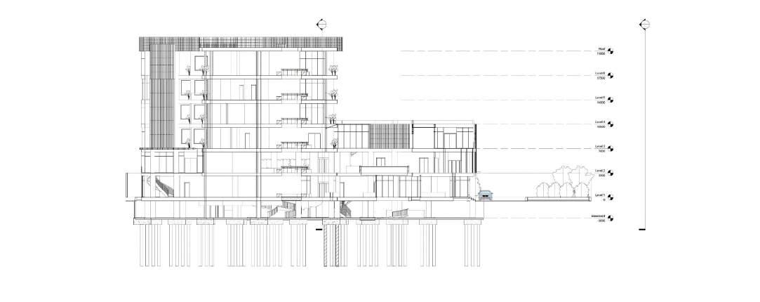 Adanya courtyard yang menghubungkan lantai 1 sampai 6 diharpkan dapat membantu meminimalisir penggunaan energi pada sistem sirkulasi dan pencahayaan pada massa bangunan.