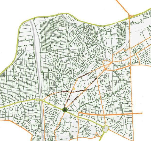 Orientasi tapak terhadap jalan tepat pada arah Barat. Sedangkan bagian tapak paling rendah menghadap arah timur.
