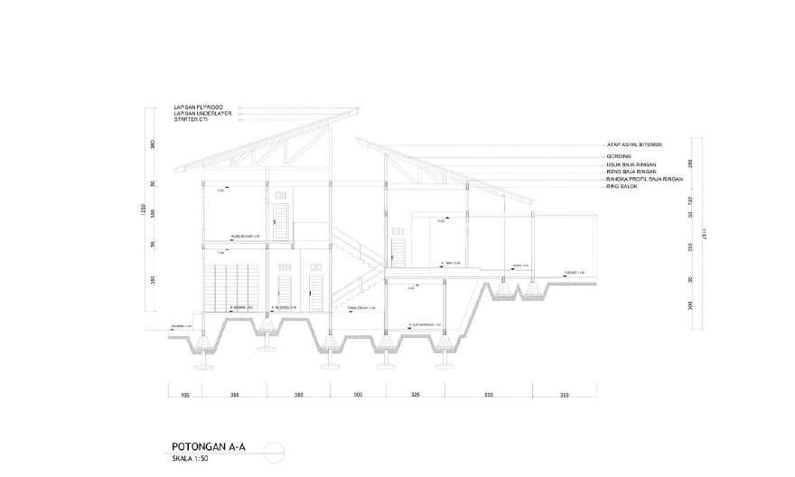 Penggunaan atap miring sebagai respon dari iklim setempat. Selain itu sebagai respon dari fasad bangunan yang menghadap ke orientasi jalan yaitu arah barat maka dibuatlah perpanjangan teritisan