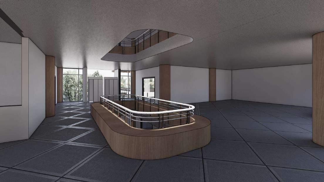 Ruang penghubung berupa tangga pada ruang diantara massa bangunan untuk mempermudah aksesibilitas pengguna