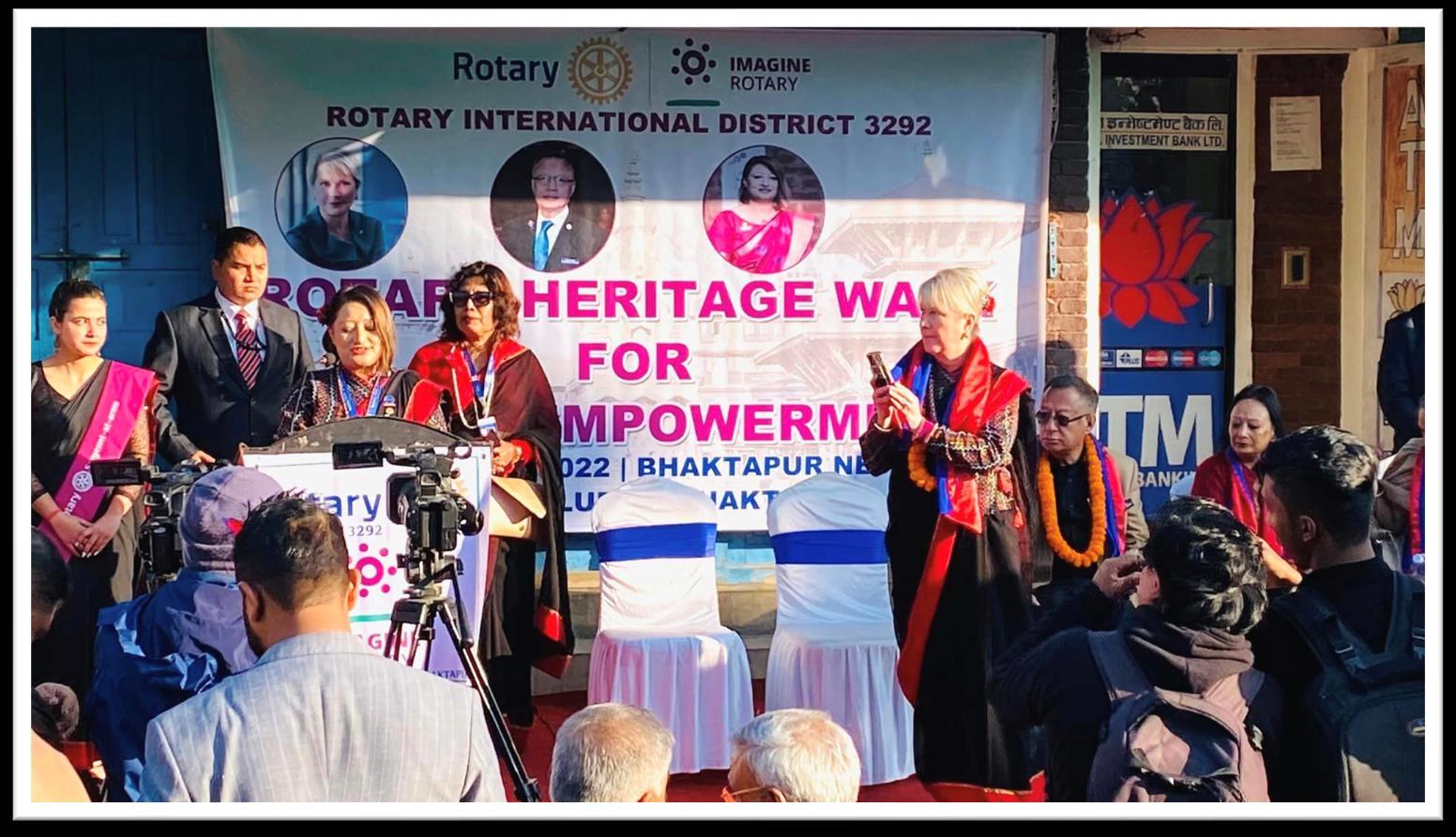 Rajaram Joshi President 2022-23Welcoming RI President Jeniffer Jones in Nepal with a “Rotary Heritage Walk for women empowerment” at Bhaktapur on December 7, 2022. It helps to promote cultural and historical heritage in this ancient city.