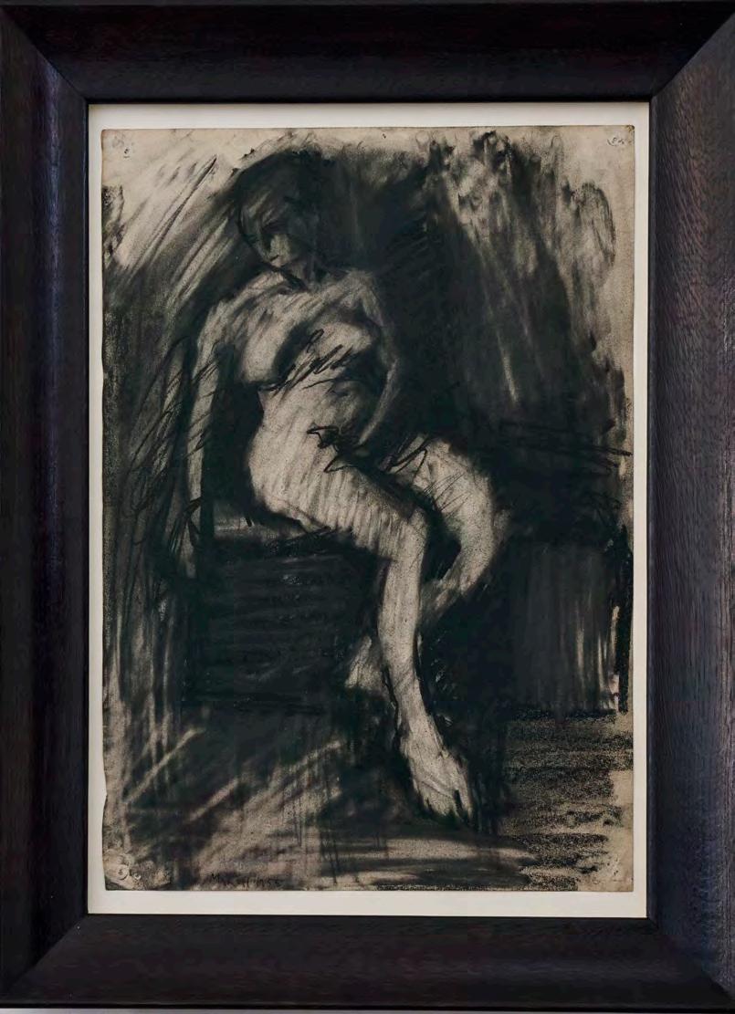 Charcoal and oil on paper, laid on board 97.8 x 66cm.