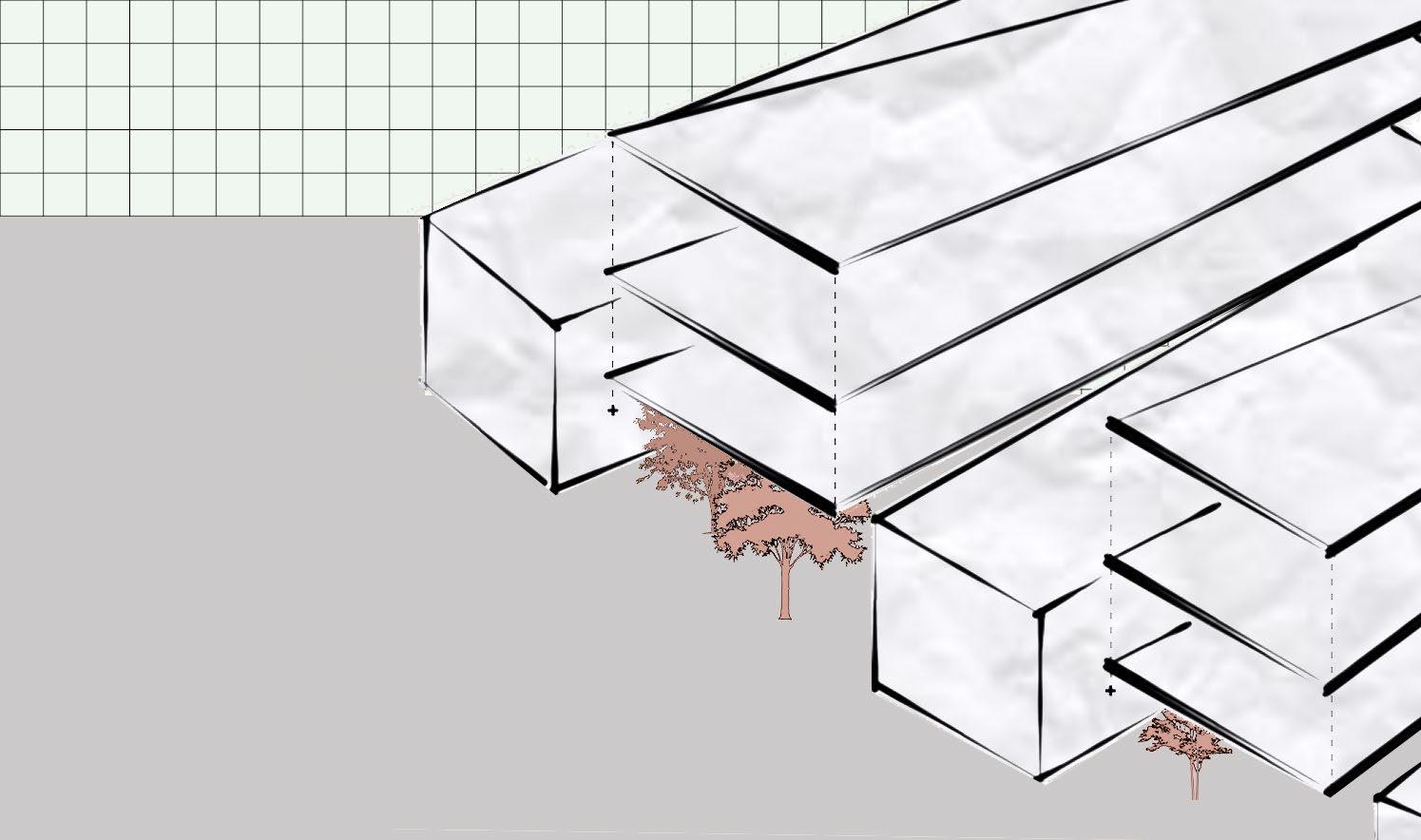 Mutual shadowing is executed by the massing integrated into the design. This can reduce the amount of direct sunlight and heat that enters the building and makes it energy-efficient, and contextually responsive.