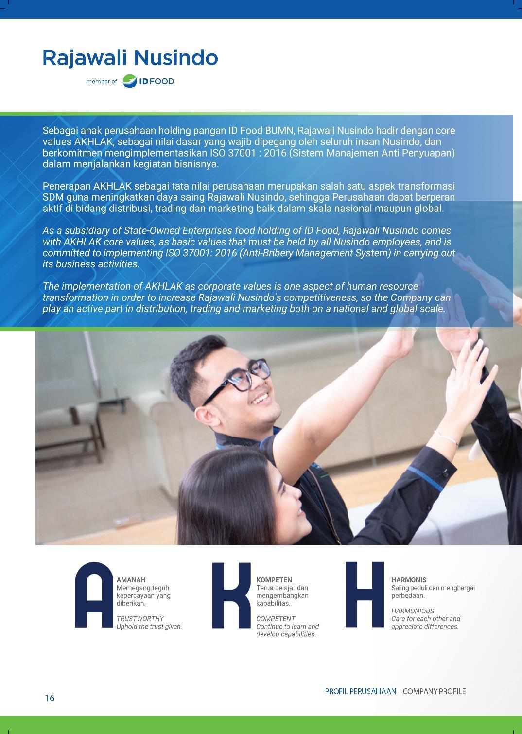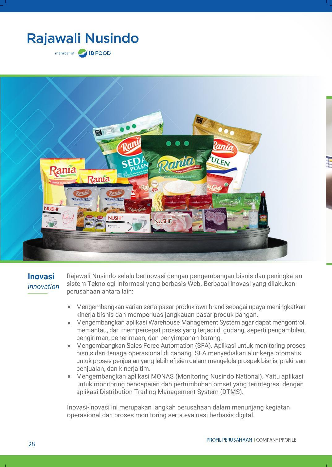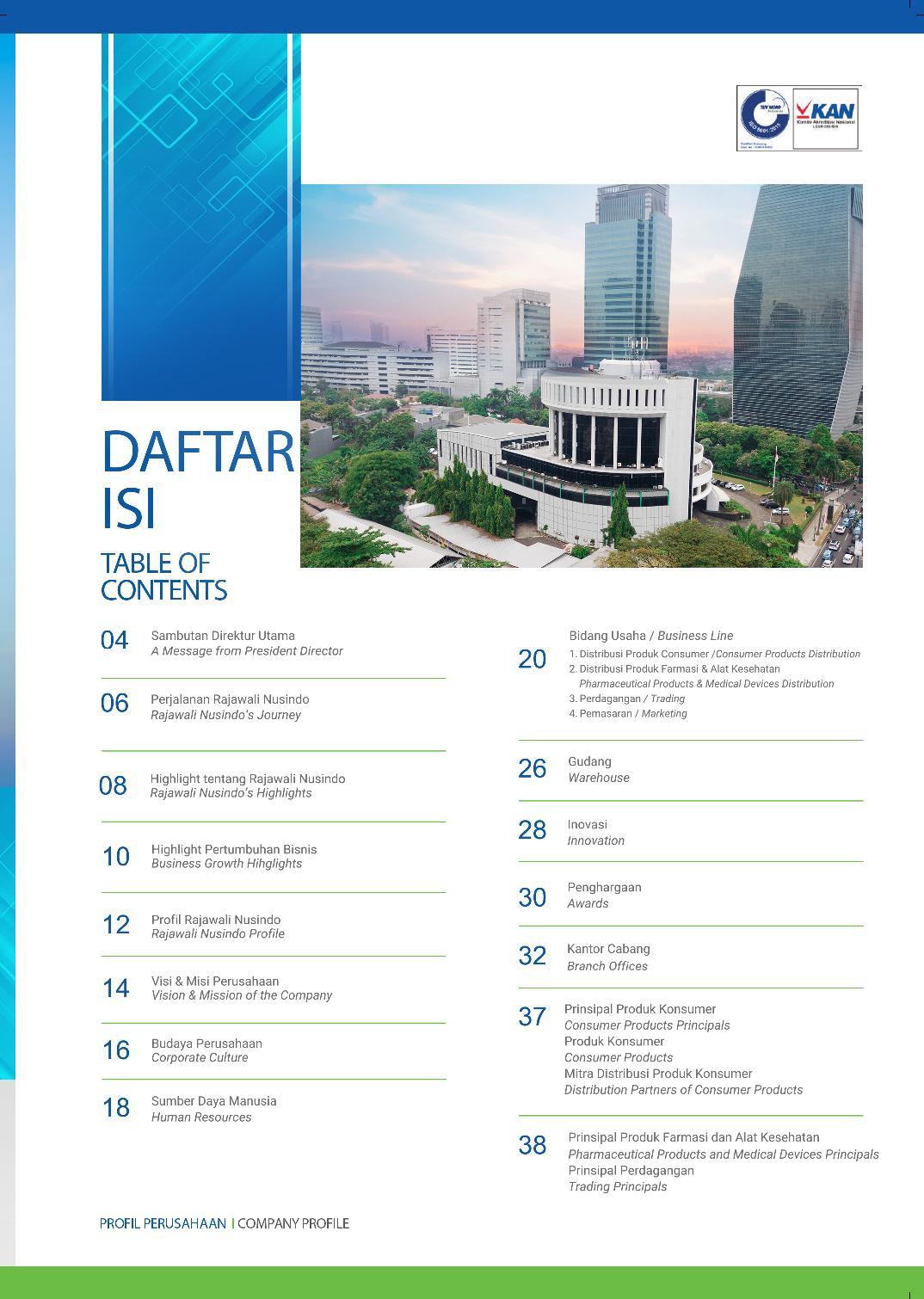 Sebagai anak perusahaan PT Rajawali Nusantara Indonesia (Persero) yang bergerak dalam bidang distribusi dan perdagangan, PT Rajawali Nusindo terus berupaya menyalurkan produk konsumsi, alkes, produk farmasi, hasil perkebunan, serta alat dan sarana perkebunan unggulan.