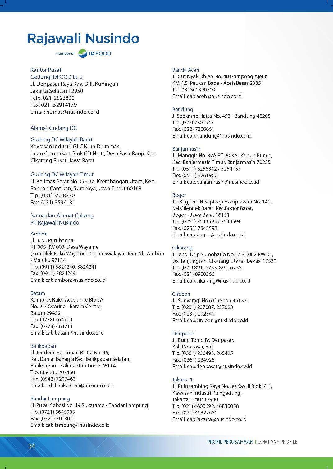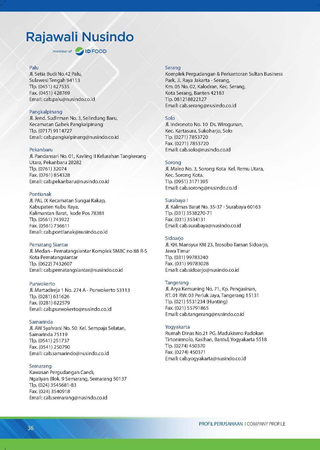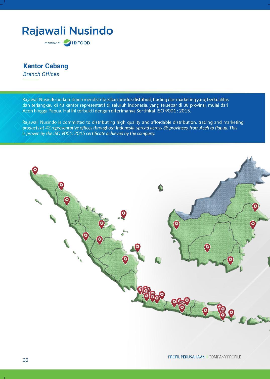 Guna mendukung pelayanan prima kepada seluruh pelanggan, Pelayanan PT Rajawali Nusindo sudah tersebar diseluruh wilayah Indonesia di 43 Kantor Representatif di 38 Provinsi mulai dari Aceh hingga Papua. Dengan jumlah pelanggan lebih dari 76.000 yang terdiri instansi pemerintah, peritel, gerai modern, dan perusahaan yang tergabung dalam PT RNI Group, PT Rajawali Nusindo terus berkomitmen menyediakan pelayanan jasa distribusi yang unggul dan terpercaya.