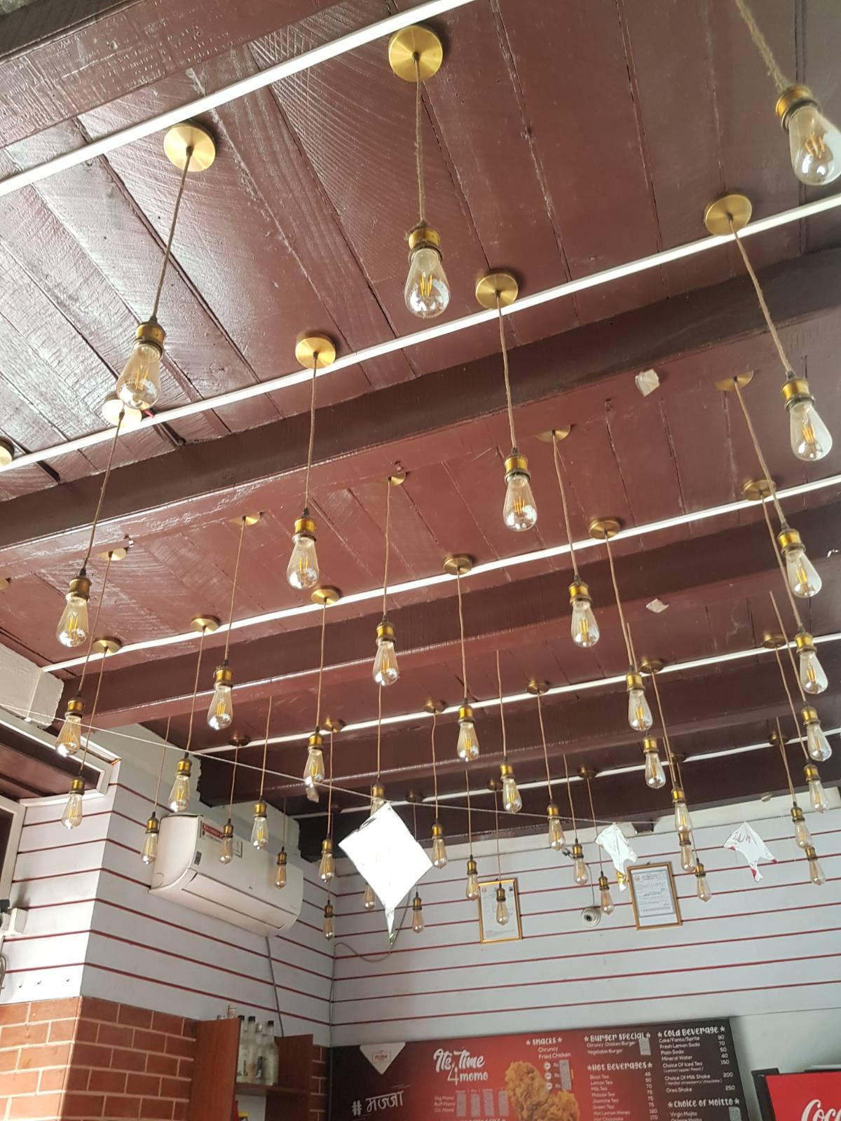 Located at national heritage zone, Basantapur, it was a challenge to create something unique and functional in small space. The client wanted to create a unique cafeteria in the area. Since this was a renovation project, I was determined to make minimum interventions and ornament the existing features as well. The dalin in the roof was kept intact as it held a pleasing appearance in itself. For aesthetics, different types of lighting fixtures were used.The main design I did was of the wall with 3d art which also resonates with the name of the café. Besides that, the function of the spaces was much more important. In the existing scenario, the kitchen and the reception counter was separated by the sitting space in between. In my planning, I tried to make the functions more easier and practical by keeping the kitchen and counter at same side and the sitting space at other. In this way, the circulation was more efficient. The sitting spaces are designed in booth concept so as to accommodate much customers as this project also requires to meet its commercial need. In total we could provide 21 seats which met the requirement of the client.