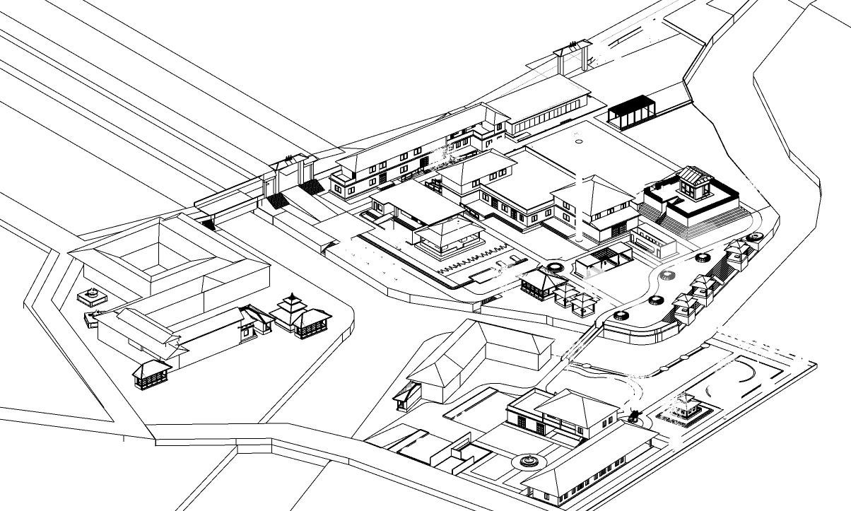 Located at Gatthaghar, the four-storeyed residential building was to change its purpose. The client’s requirement was to turn it into a luxurious hotel based on tropical theme. While involving in the project, I went to site for measurement, prepared built drawings and planned the hotel to be made. The project was to be designed in a luxurious way with tropical landscape. My attempt was to meet the client’s wants with minimum interventions to the existing building. The design approach was to cause minimum interventions to the existing building and create spaces as required. At the basement, we planned a kitchen and dining which opens to the backyard consisting of swimming pool, outdoor bar area and landscape. The ground floor which is acessed first while enetring the building consists of reception and other administrative units along with a spacious waiting lobby.