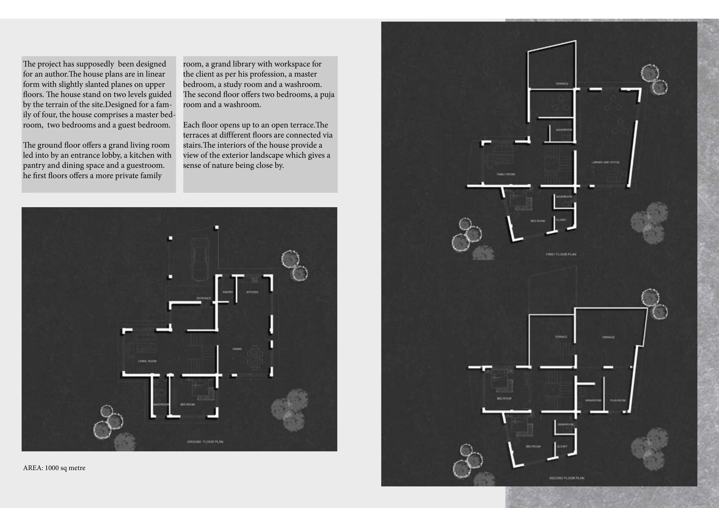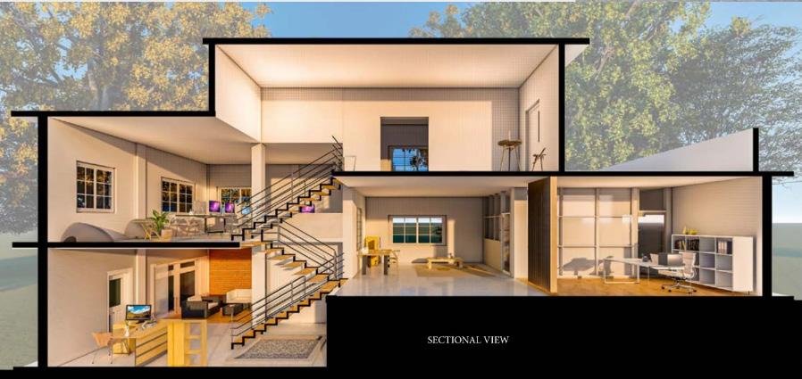 The idea is to make vertical exploration, a multi-level programme that would fulfill the requirements of a burgeoning practice. the spatial programme started with designating levels to different uses, which were eventually dovetailed into a plan. the idea of constriction and liberation is another attempt atexploiting the vertical axis to the maximum. the vision is for a workspace surrounded by