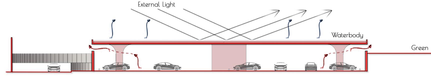 Mass upliftment, allowing visual & spatial free flow on ground.
