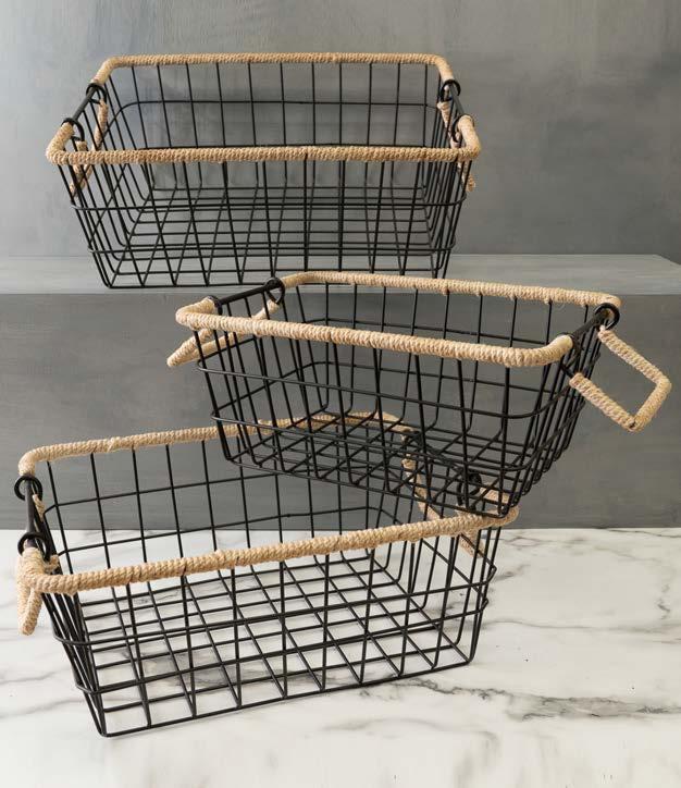 20507 - Jute & Iron Rectangle Baskets, Set of 3 - 18", 16", 14" Min. 2, 6, 12