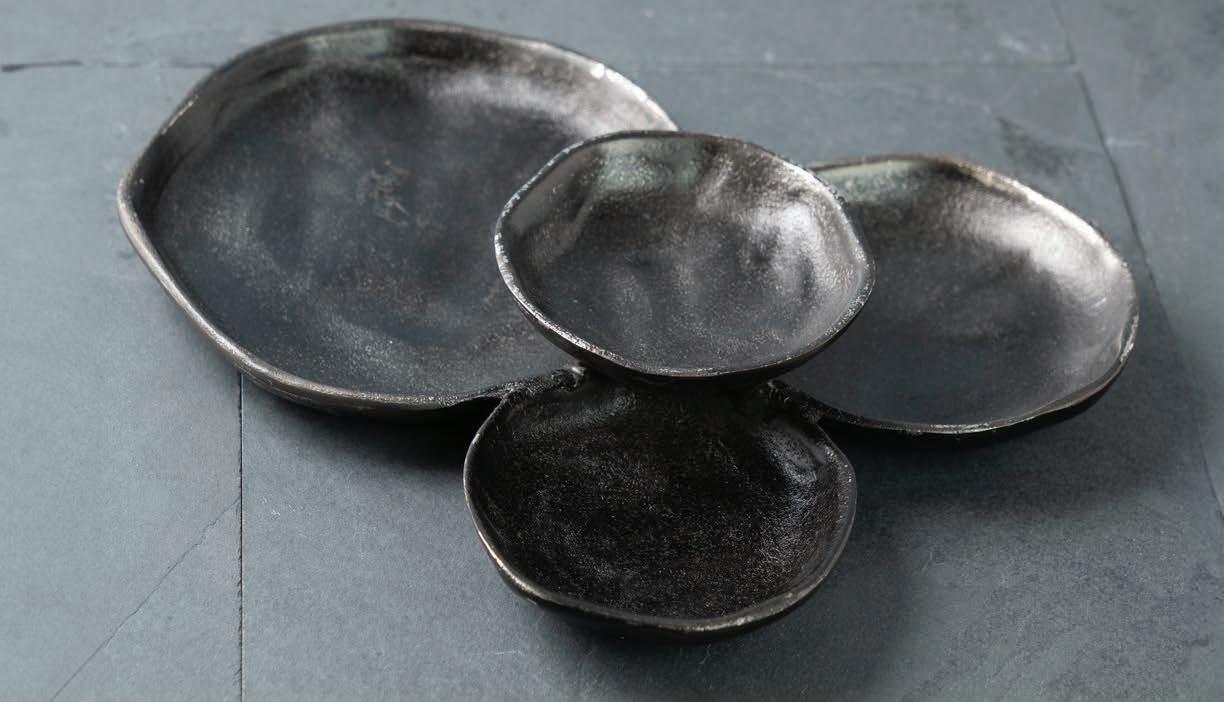 From sleek trays to elegant bowls, the distinctive hammered finish lends a touch of rustic charm and timeless allure to every serving essential.