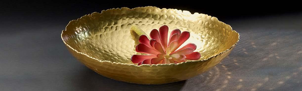 The Hammered Collection A. 20512 - Hammered Torn Edge Bowl - 13” - Min. 4, 12, 24 • B. 16392 - Gold Hammered Torn Edge Bowl - 13” - Min. 4, 12, 24