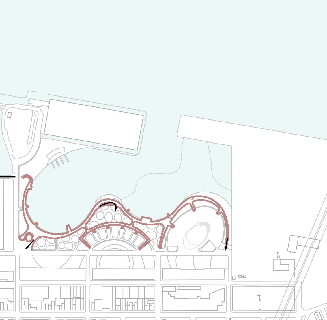 The site is divided into two portions, creating a central open space that seamlessly connects both streets, enhancing accessibility and ensuring a smooth circulation flow for users throughout the aquatic center.