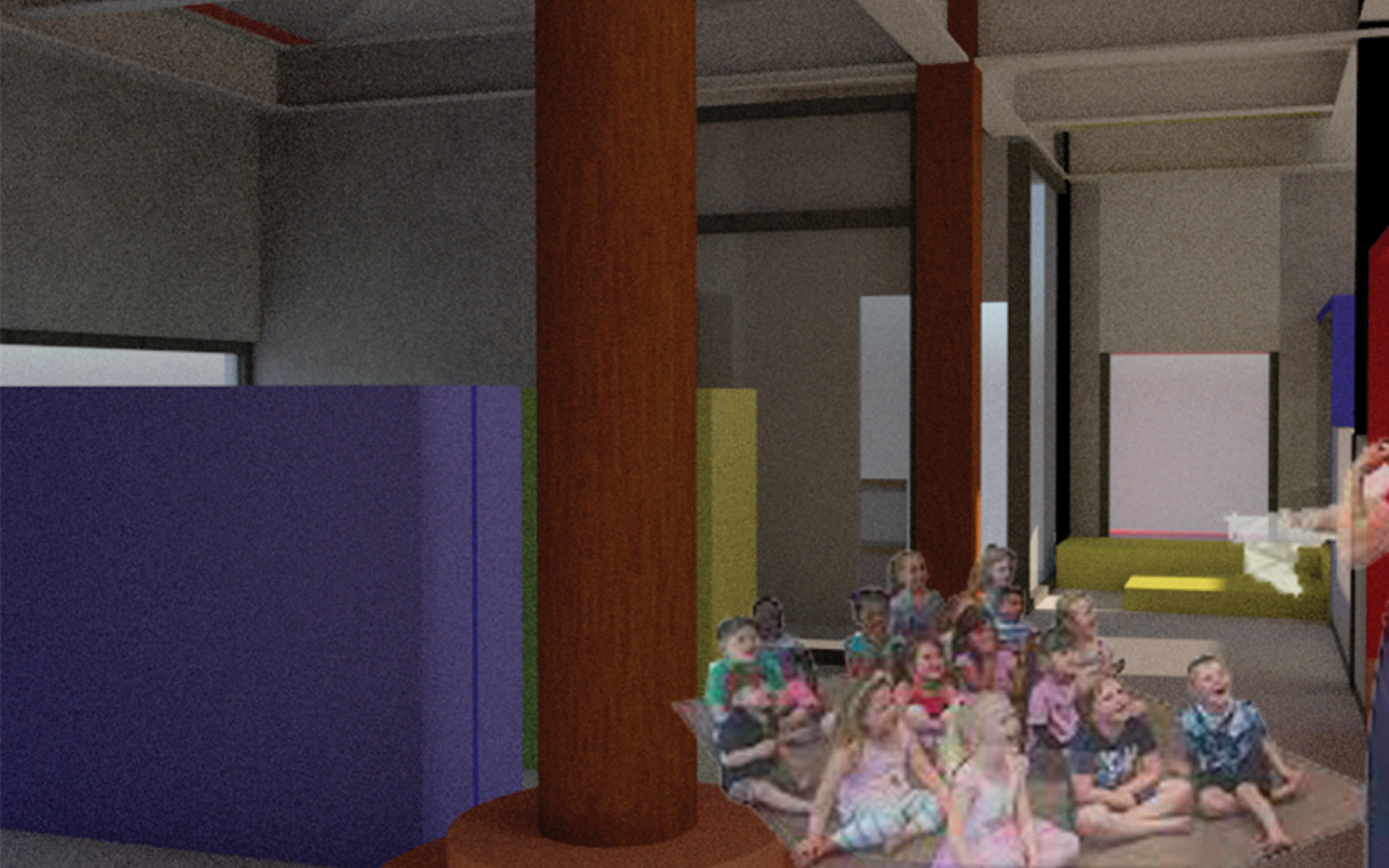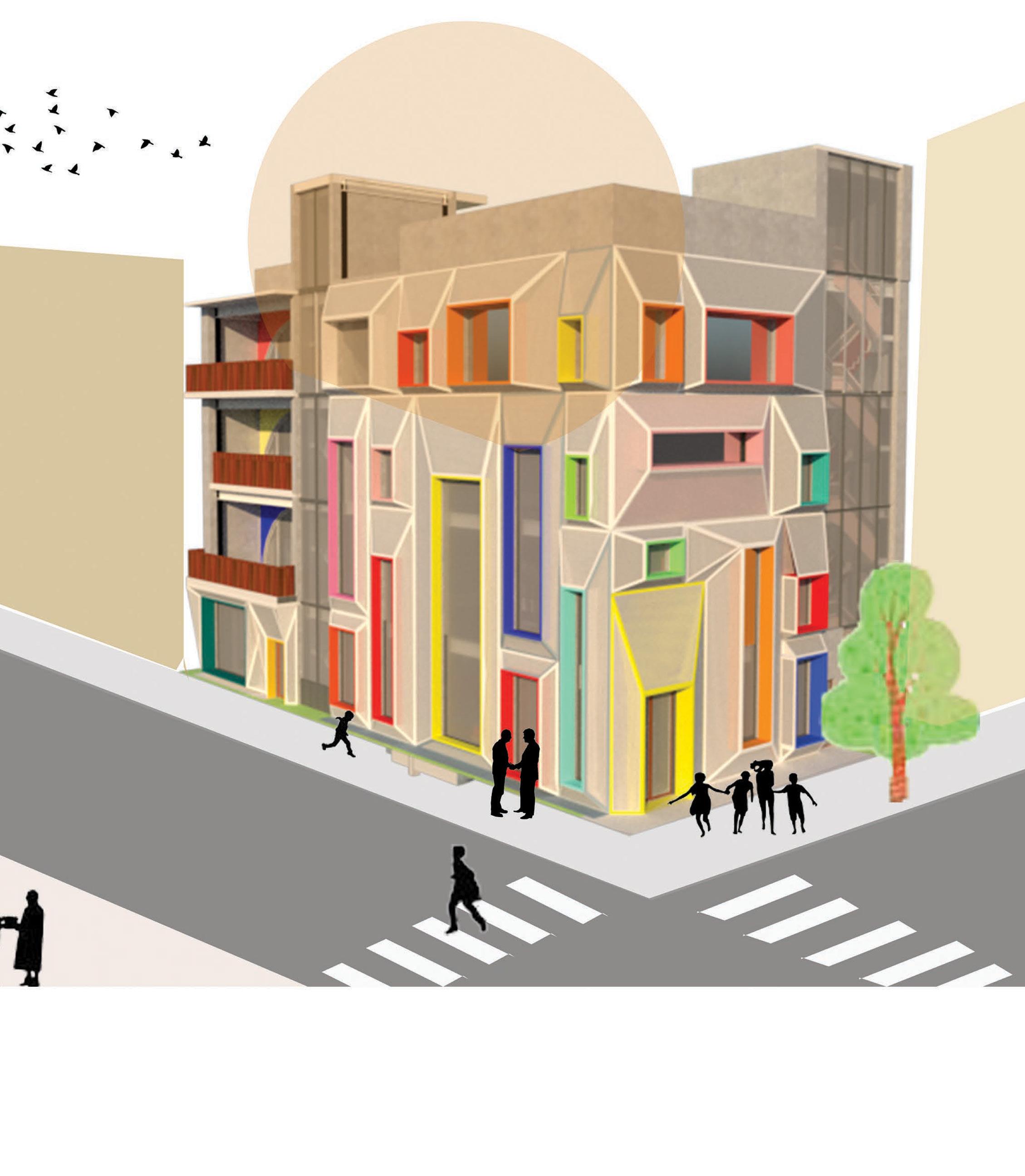 This kindergarten school in Harlem is designed to create a welcoming and stimulating first school experience for young children. Emphasizing an open-classroom concept, the design allows learning to extend beyond traditional spaces into the interactive lobby area. The lobby itself is transformed into a playful environment where children can sit on built-in railings, explore, and engage with their surroundings. A vibrant palette of colors and geometric shapes is integrated into both the interior and exterior, fostering creativity, cognitive development, and a sense of familiarity. The open layout encourages social interaction, movement, and handson learning, making education an immersive experience. Natural light and child-friendly materials enhance comfort and safety, creating an inviting atmosphere for both learning and play. This project aims to establish a joyful and engaging environment where children can develop foundational skills while feeling at home in their first educational setting.