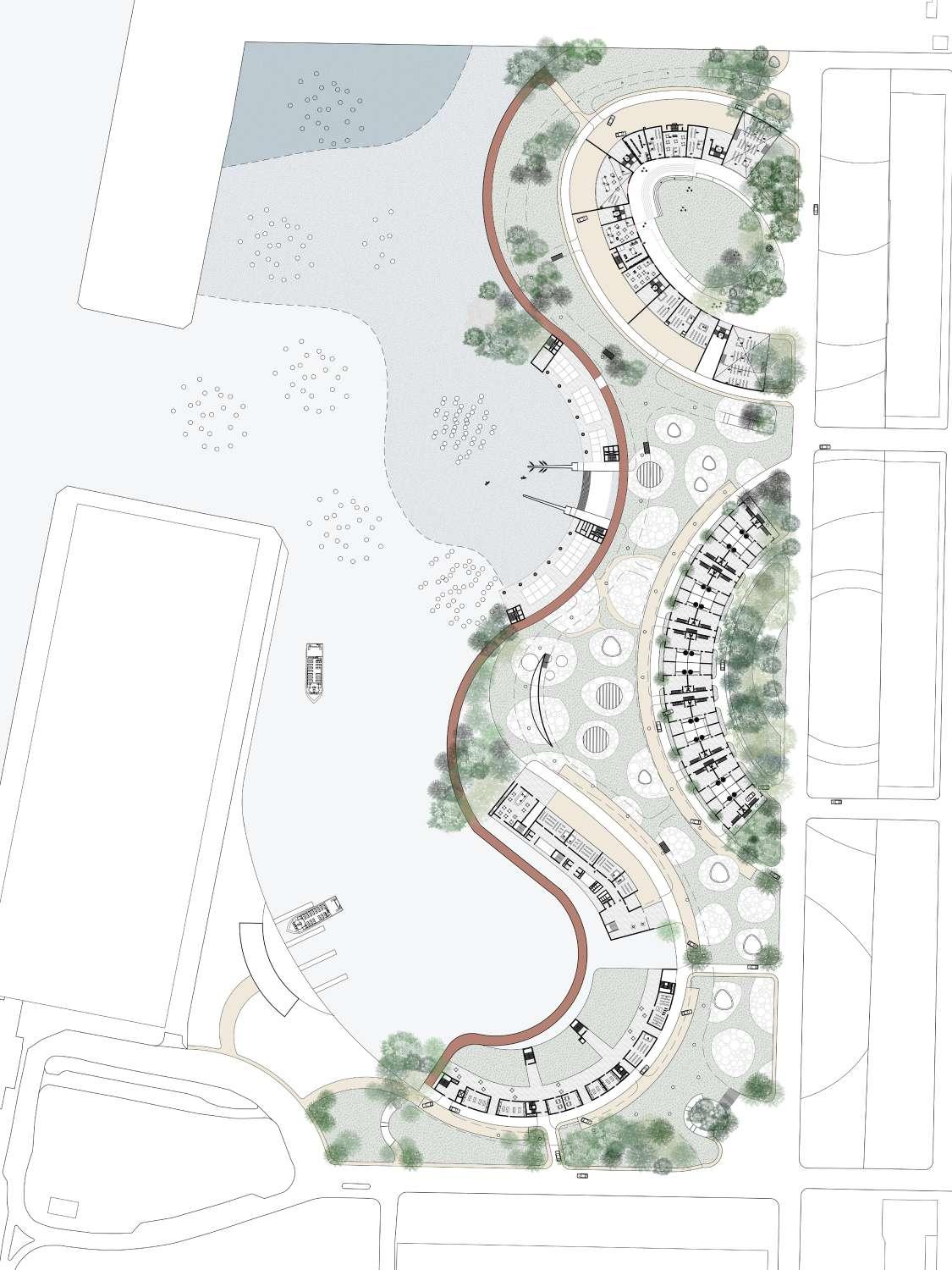 Dividing the site into 3 parts - Hardscape, sponge landscape, marshlands
